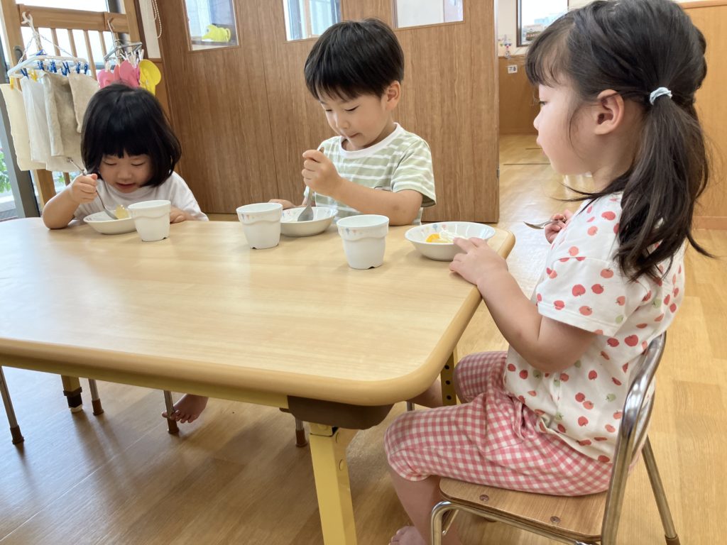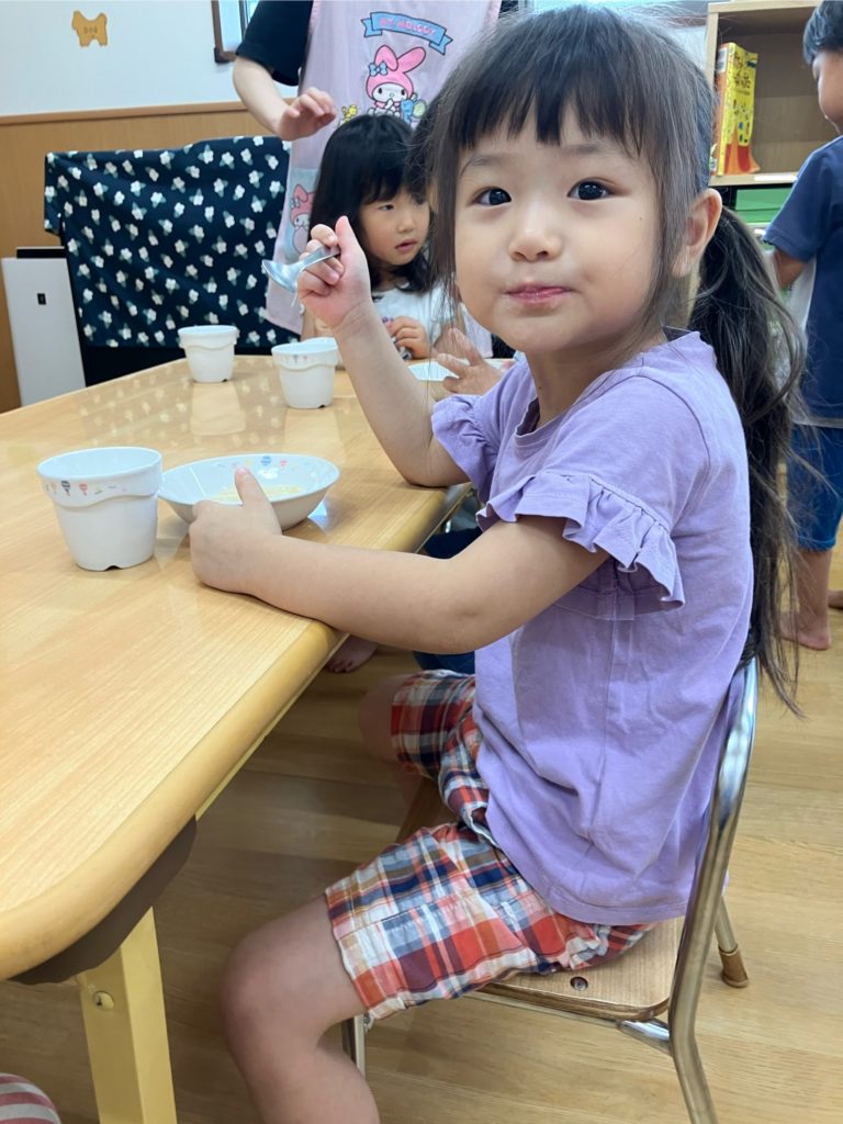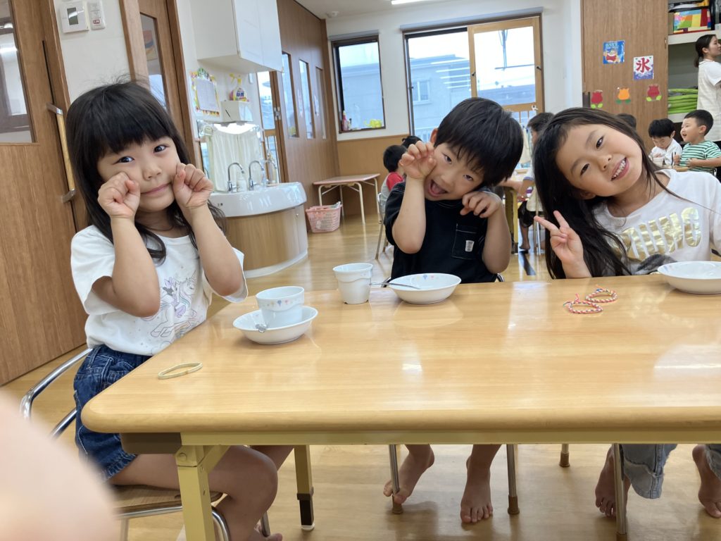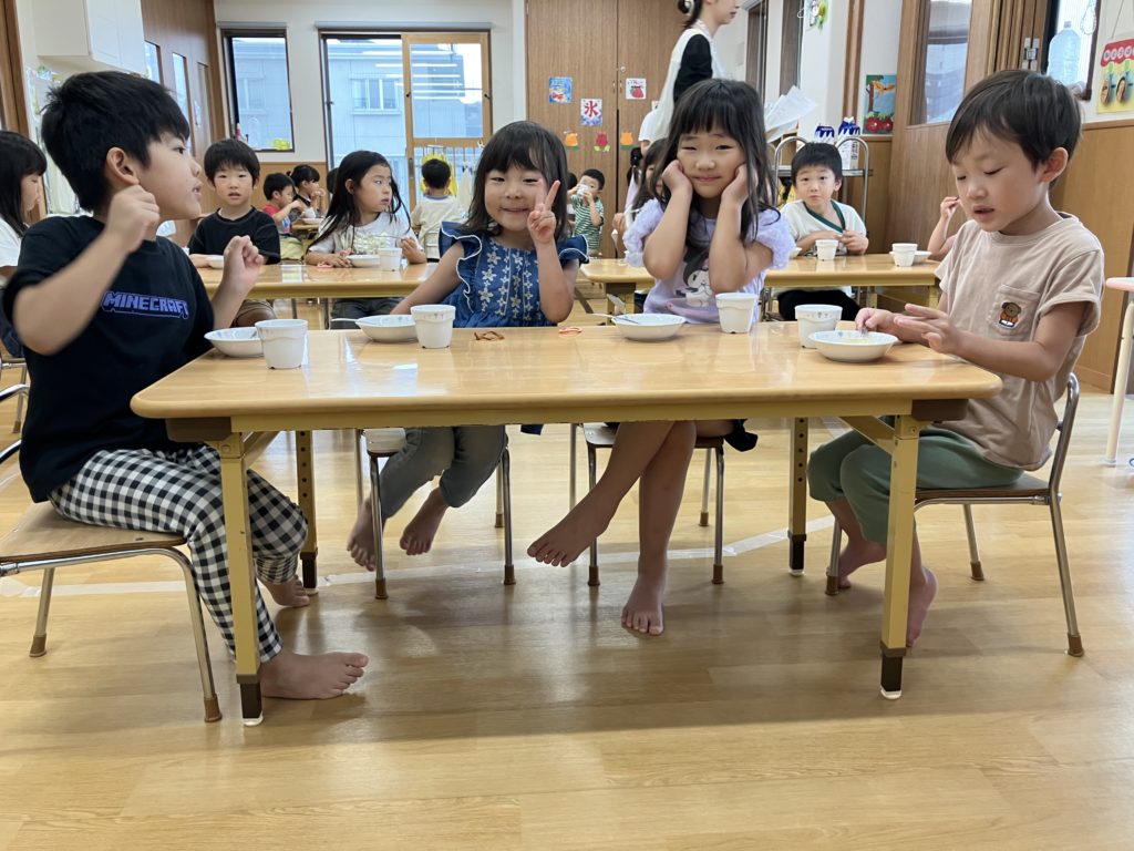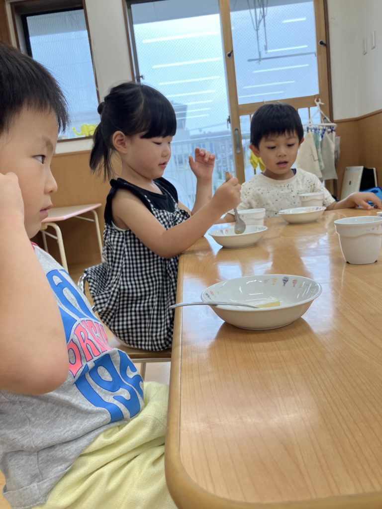 今日のおやつは七夕ゼリーです!どんな味だったのか、子どもたちに聞いてみて下さいね♪みんなの願いが叶いますように😊