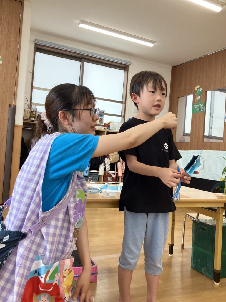 そして、どのような七夕飾りを作ったのか発表をしてくれました!最後にクラスで写真を撮りましたよ📷