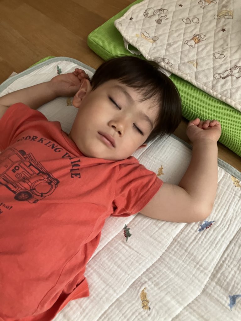 給食の後はお昼寝時間…。