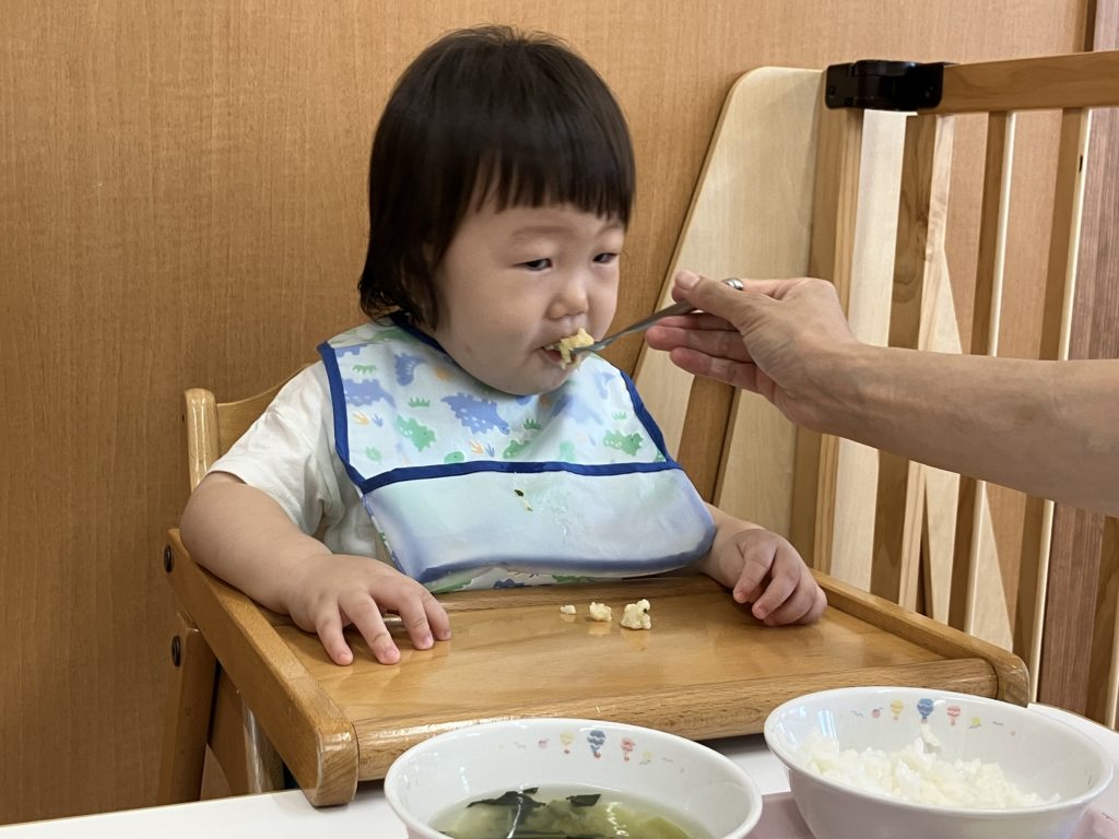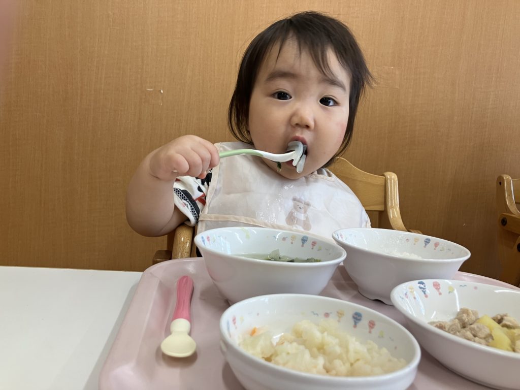 手掴み食べや、スプーンを使いながら上手にお口に運んでいます!