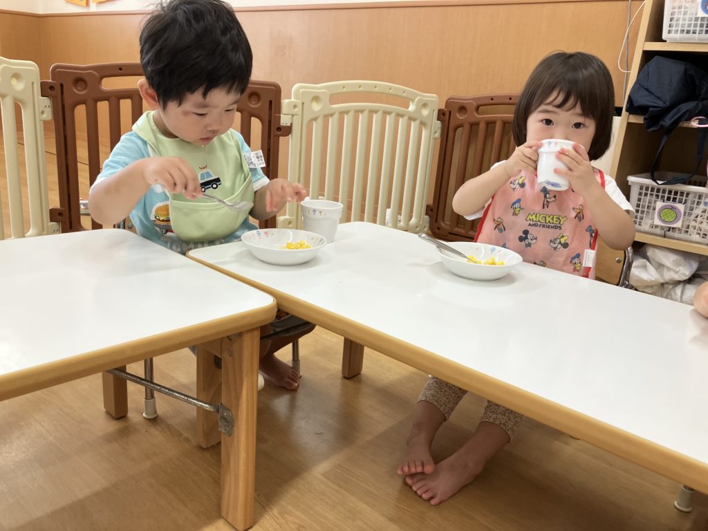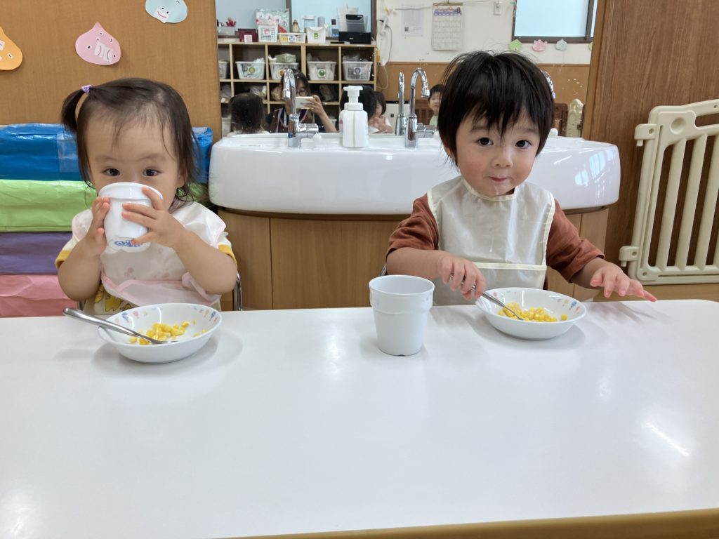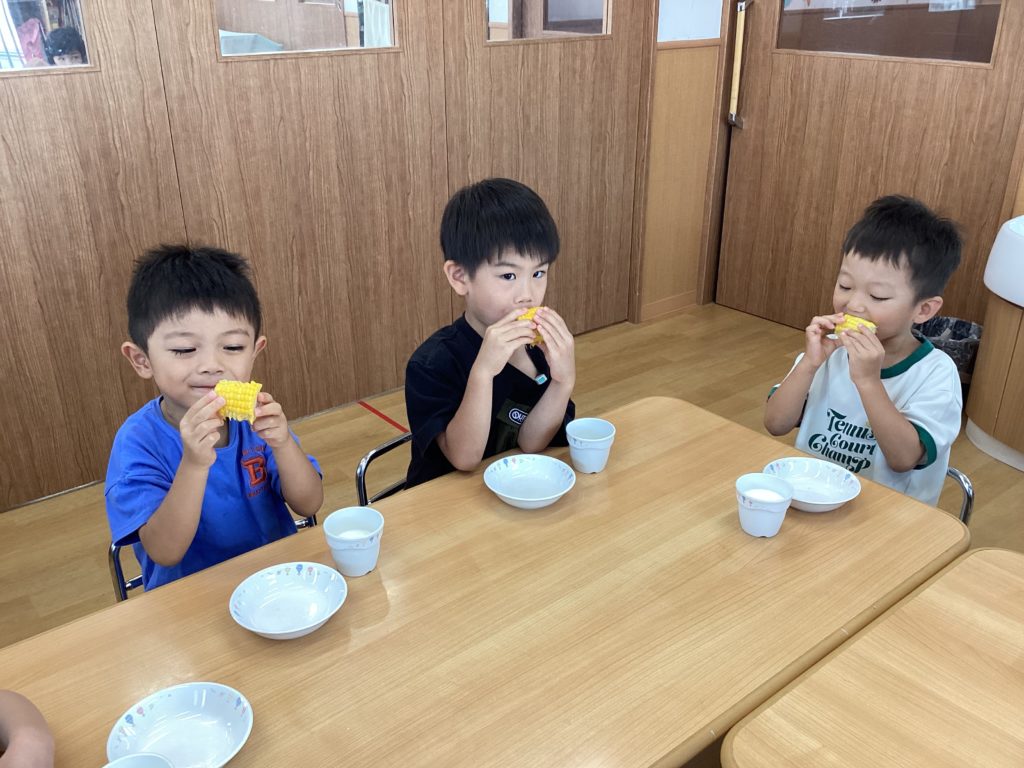 今日はペンギン組とクジラ組でとうもろこしの皮剥きを行いました!