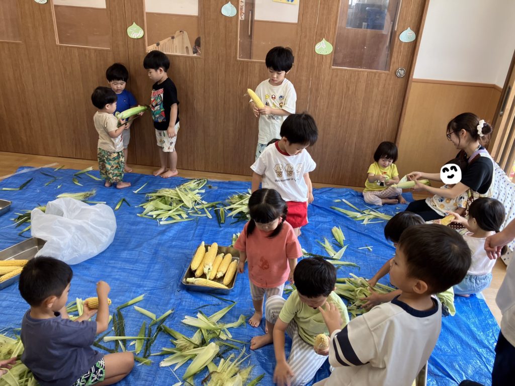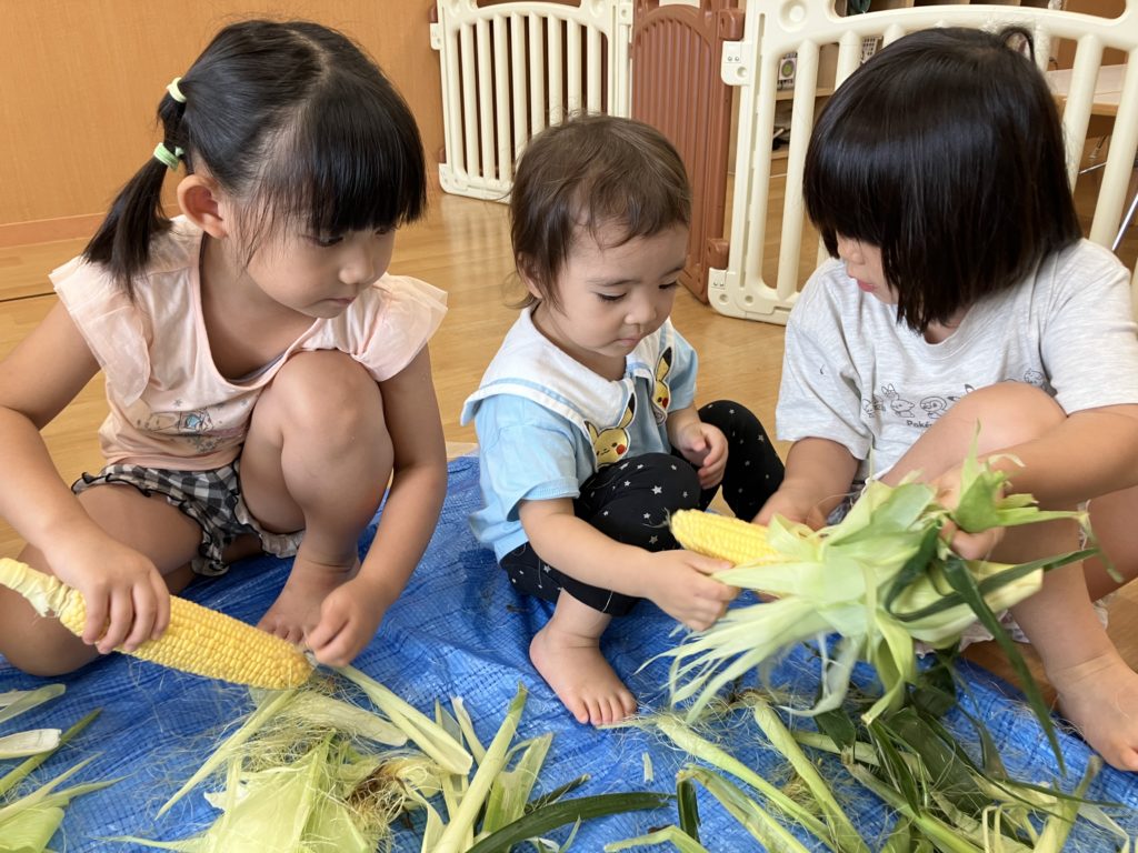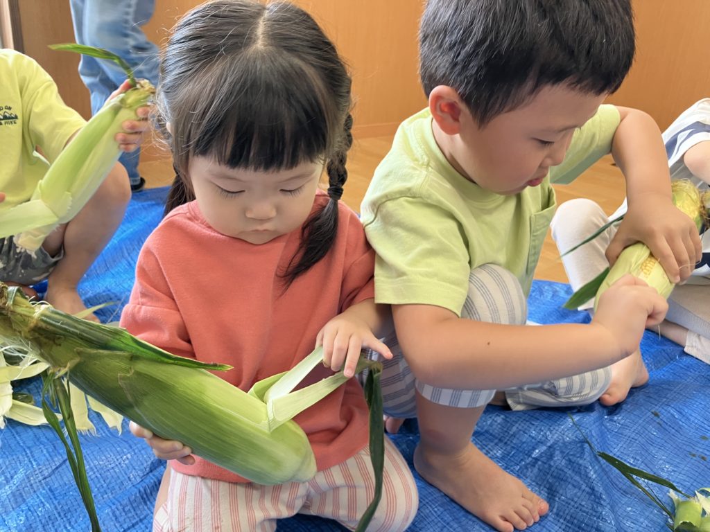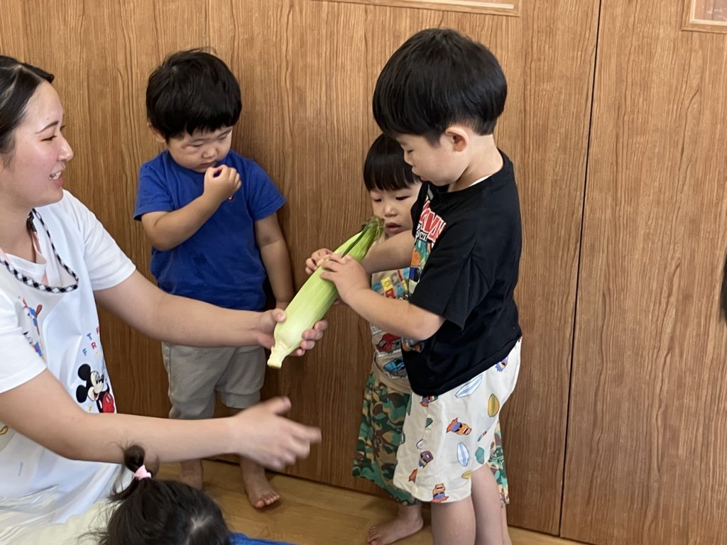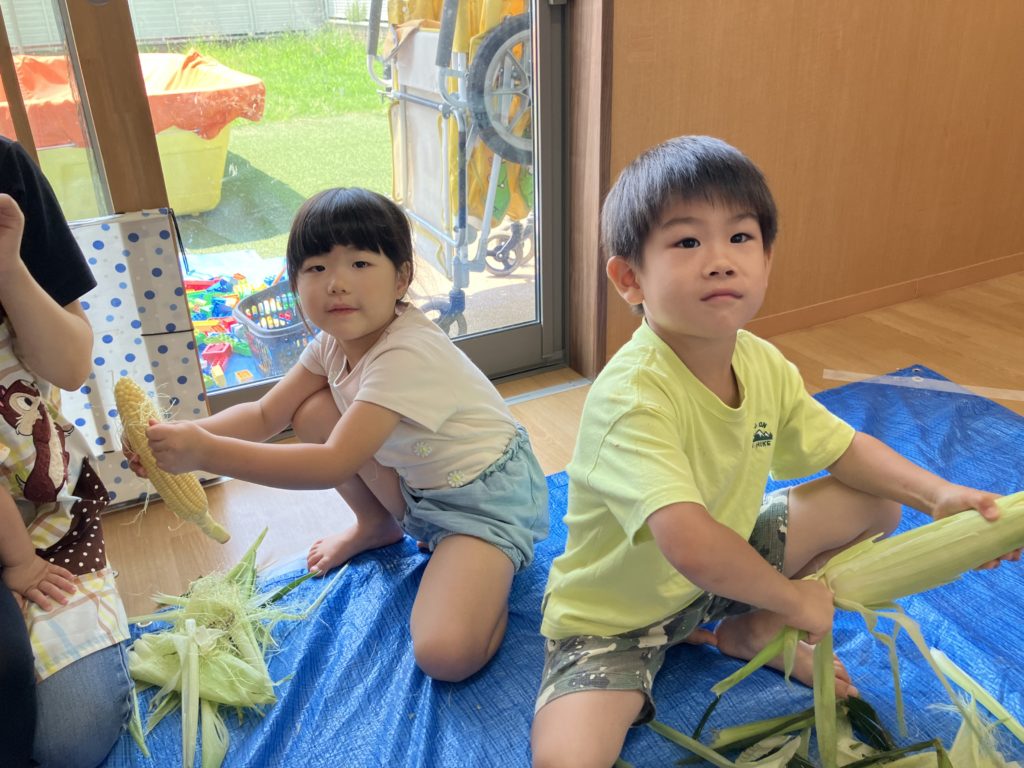 うぐす保育園 日進とうもろこしの皮剥き🌽