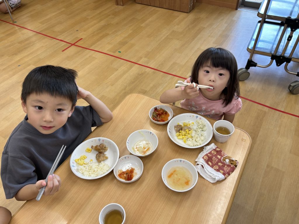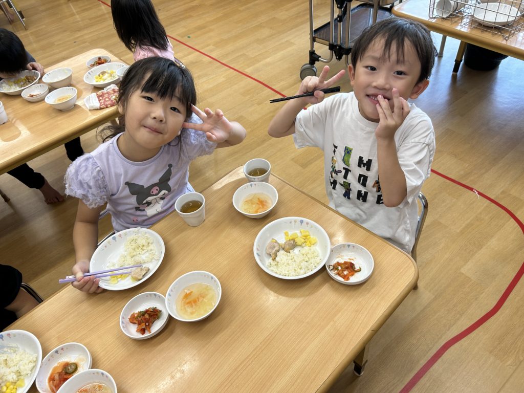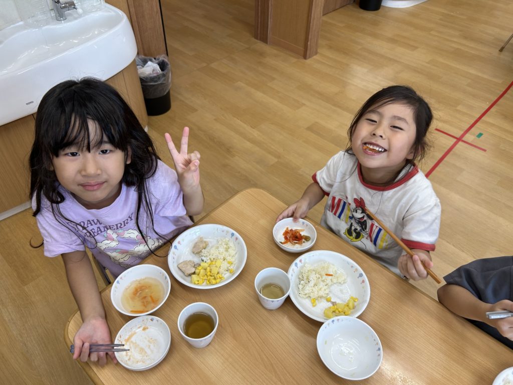 8月8日の給食では副菜の中にオクラを入れてもらい、ニコニコ笑顔で美味しくいただきました🍽