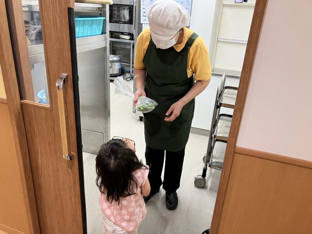 オクラを収穫した後は給食室まで届けに行きました😆!