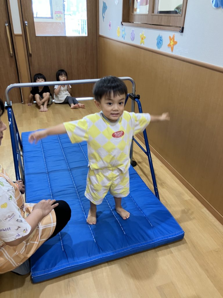 足抜き回りや跳び箱ジャンプ、でんぐり返しや平均台の上を歩くなど沢山練習しました😊