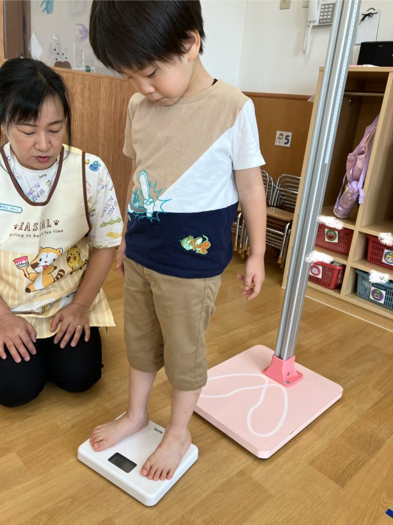 身体測定で「皆大きくなってたよ!」と伝えるとお友だちと喜び合っていました😊