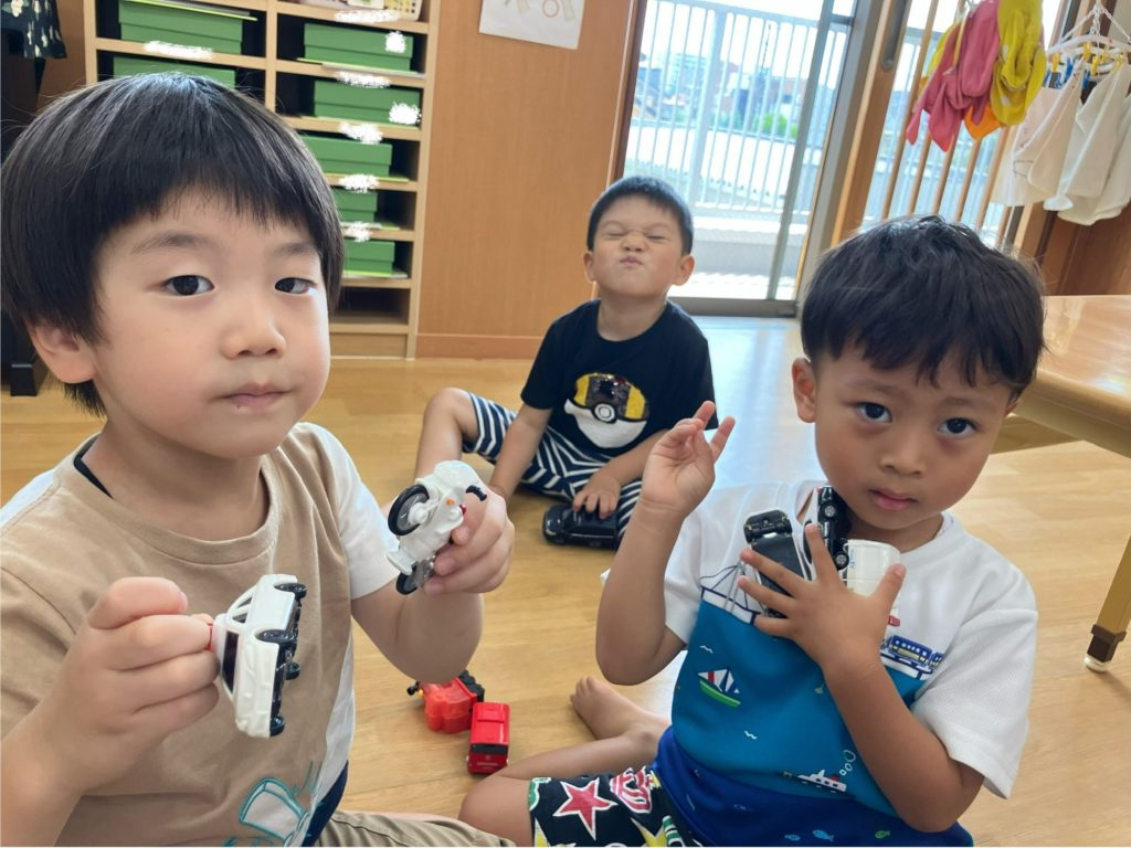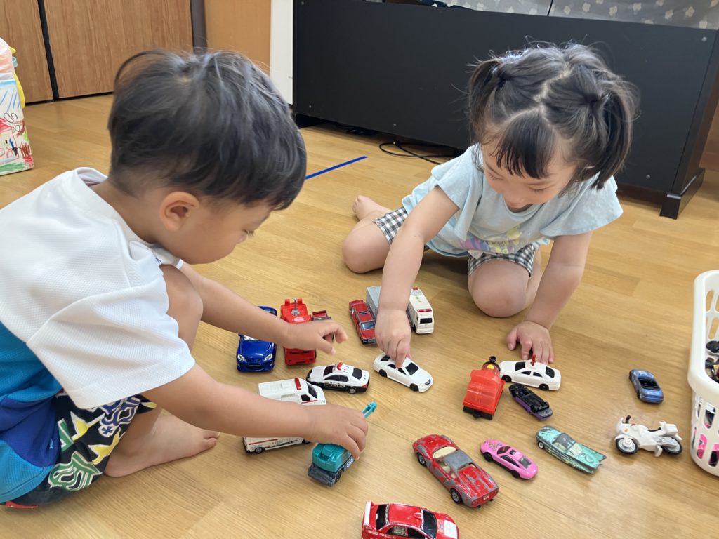 トミカでは、お気に入りの車をお友達にお話したり、ごっこ遊びを楽しんでいました♪