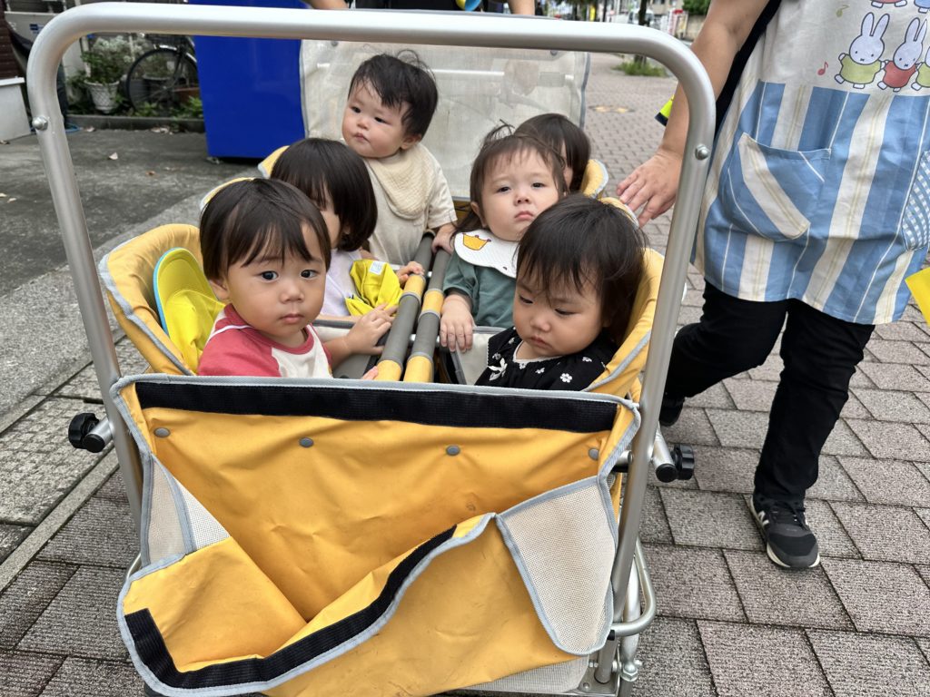 ラッコ組さんは午前中、朝おやつを食べてからお散歩に行きました😊