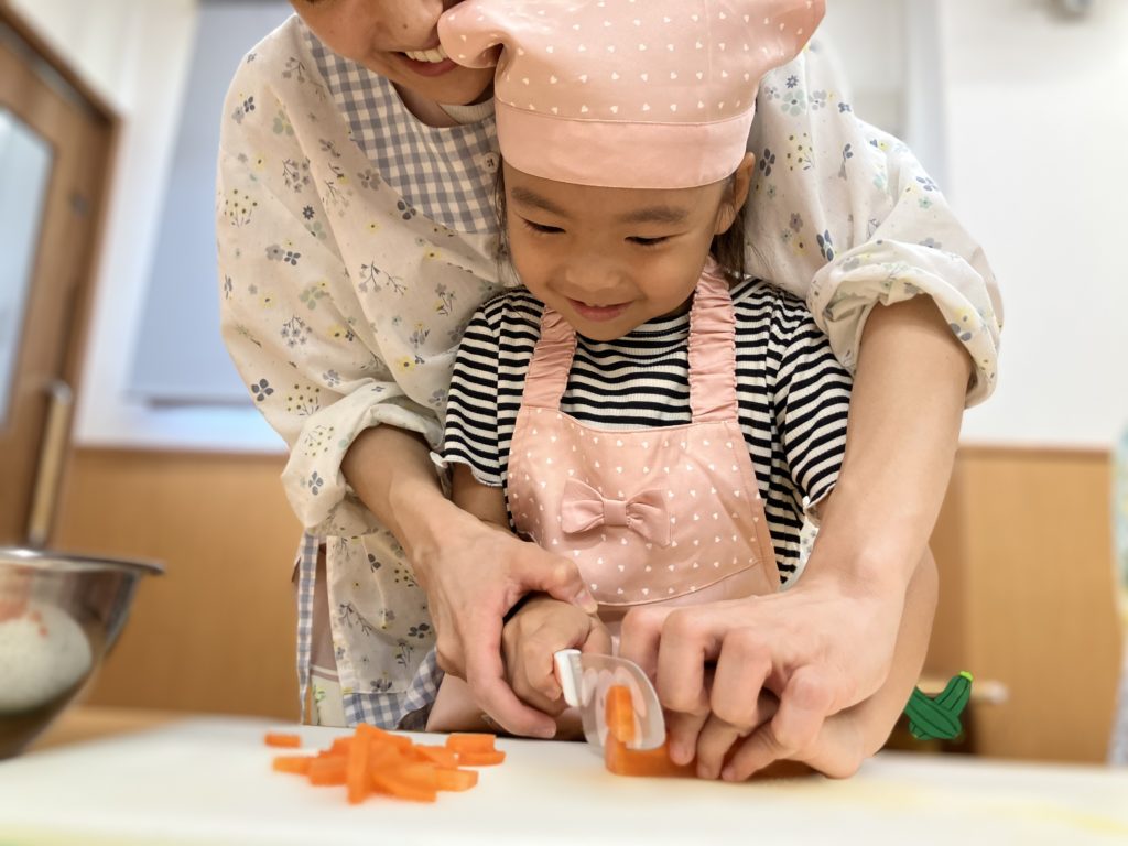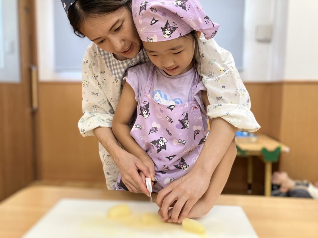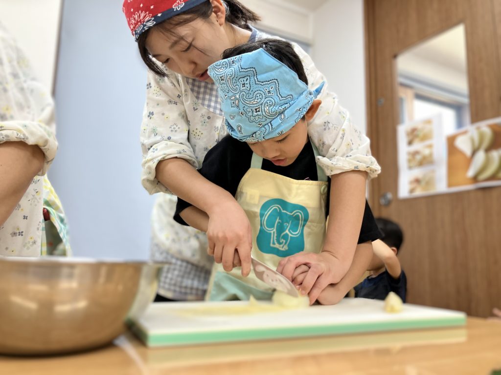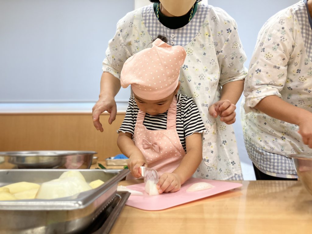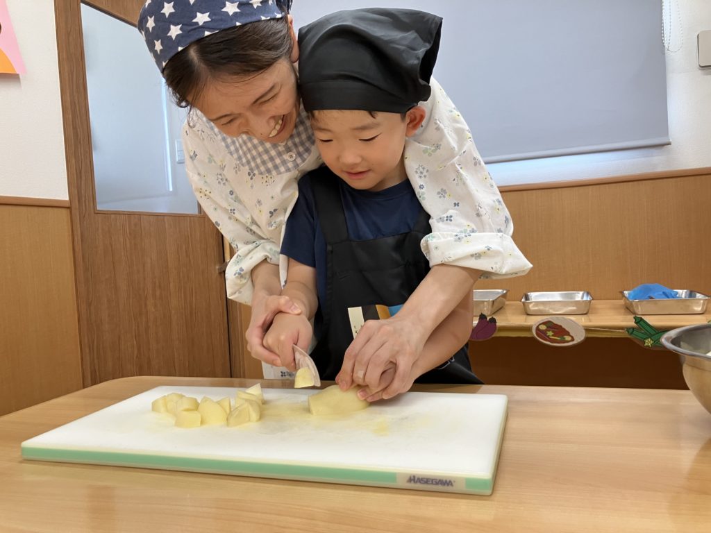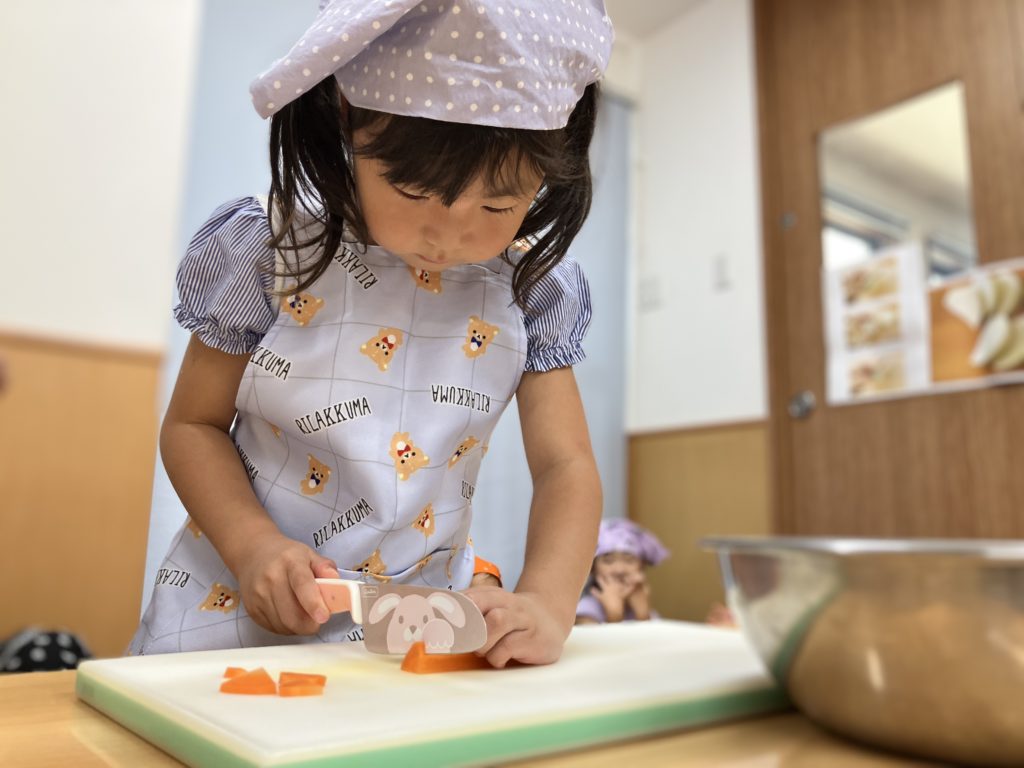 稲刈りやご家庭で野菜を切る経験をしていたので、皆「猫の手でやるんだよね!」、「包丁の刃は自分に向けないの!」などと教えてくれたりもしました🌼