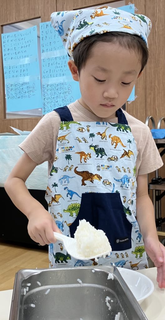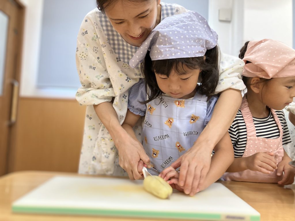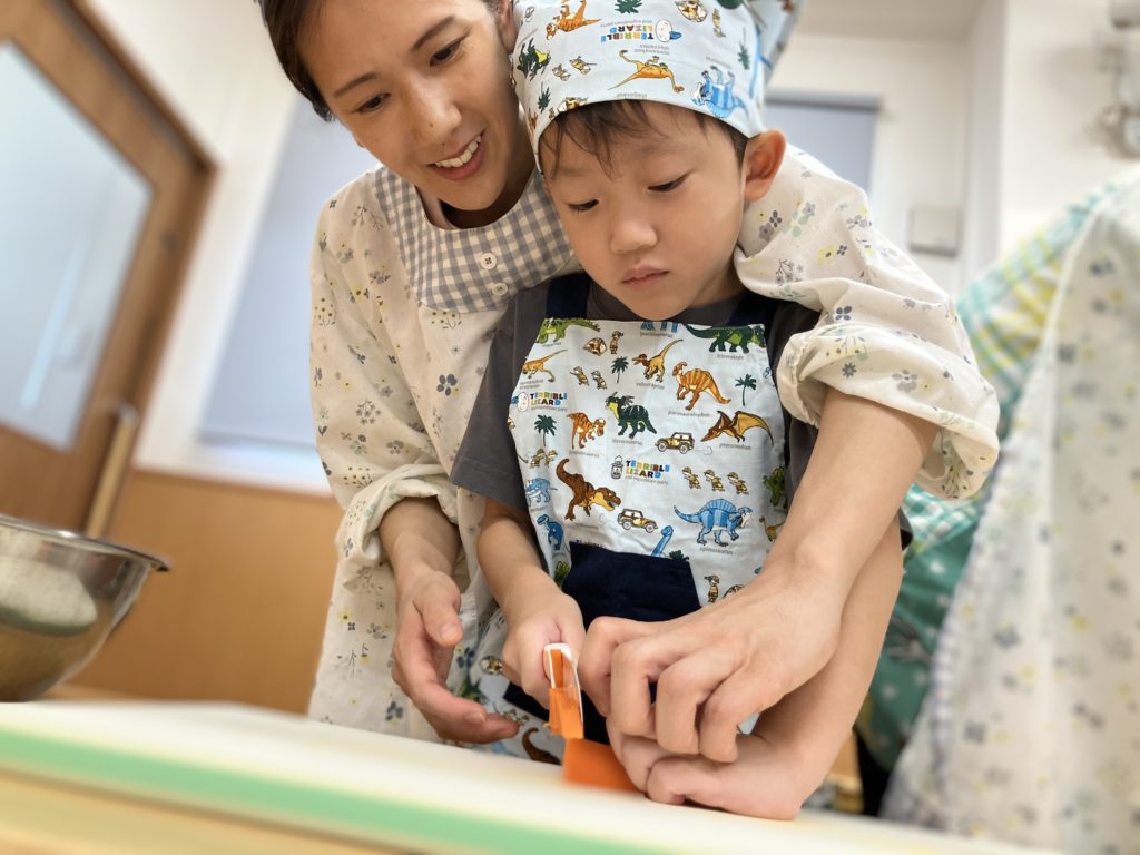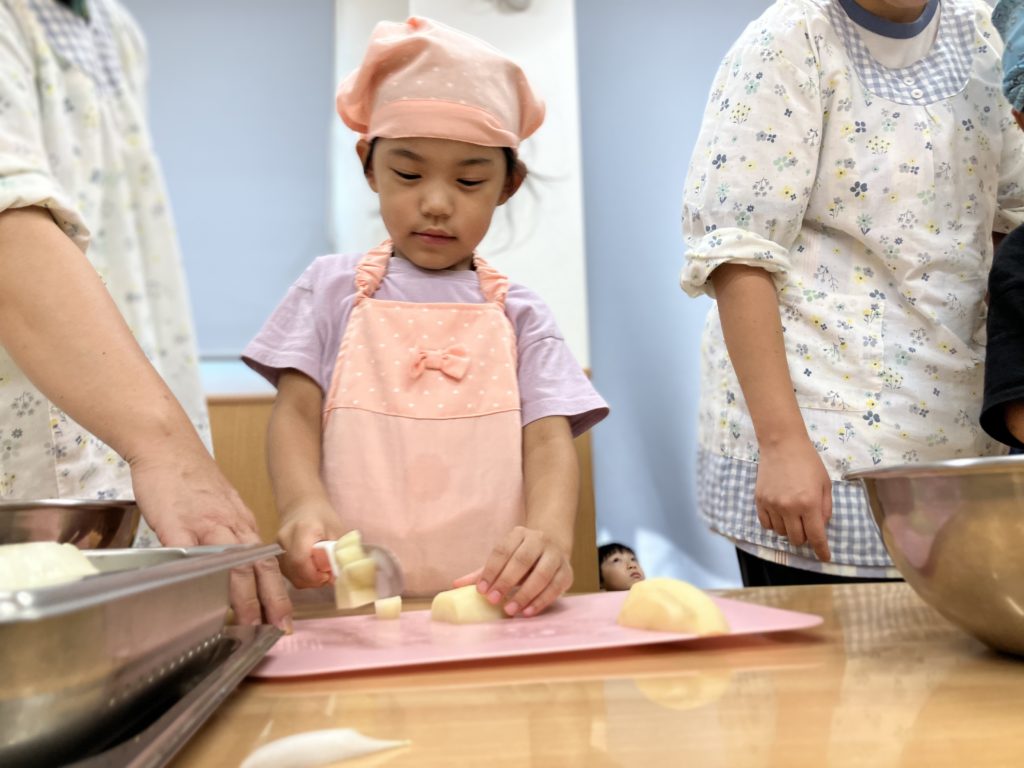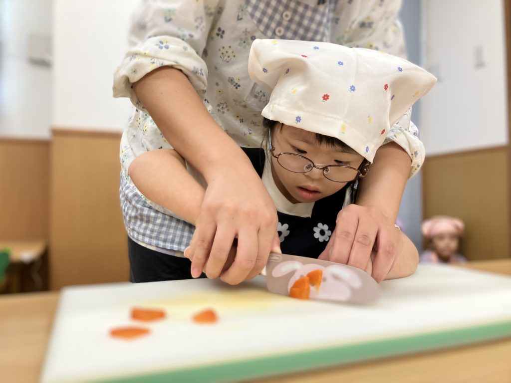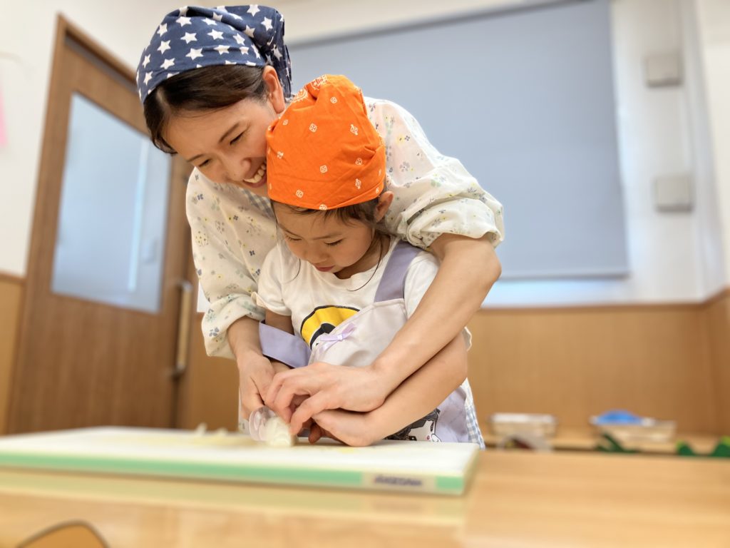 稲刈りやご家庭で野菜を切る経験をしていたので、皆「猫の手でやるんだよね!」、「包丁の刃は自分に向けないの!」などと教えてくれたりもしました🌼