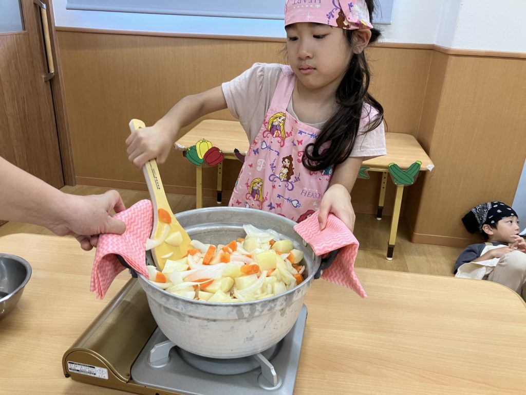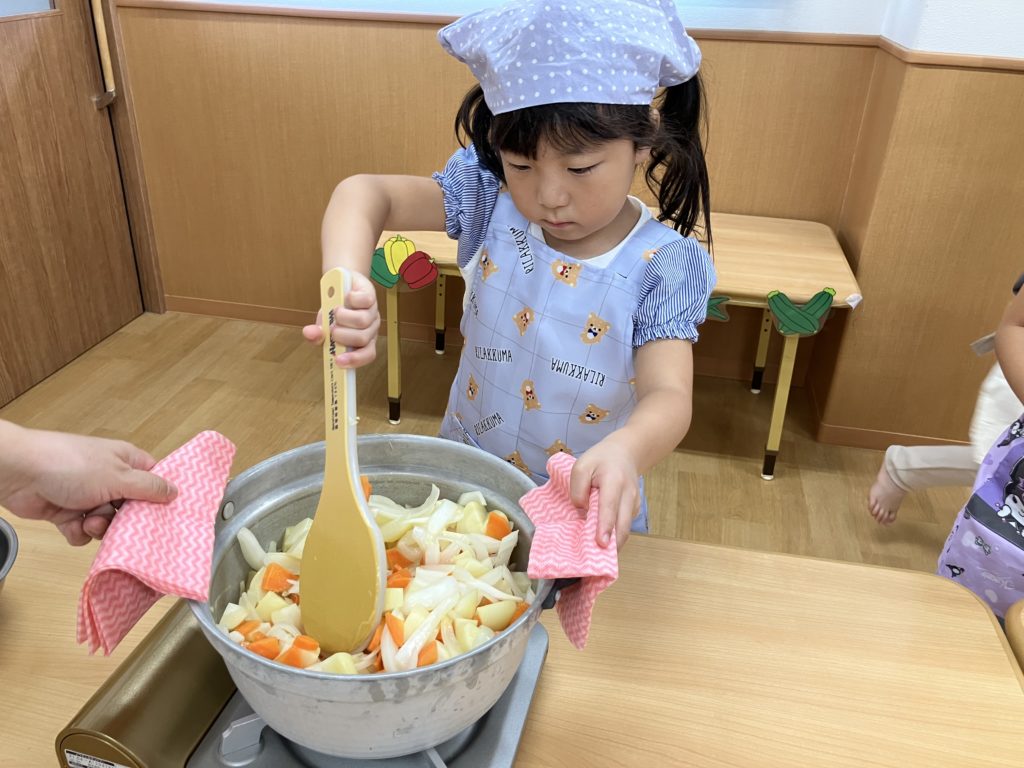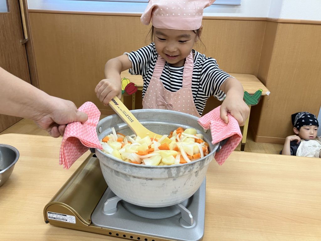 「カレーどうなってるかなぁ」とウキウキワクワクしながら保育園へ戻ると、