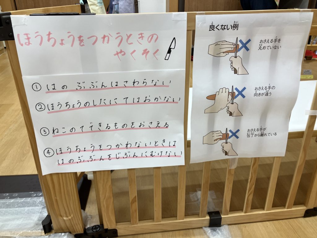 その後は包丁の使い方、使う時のお約束もしっかりと確認しました!