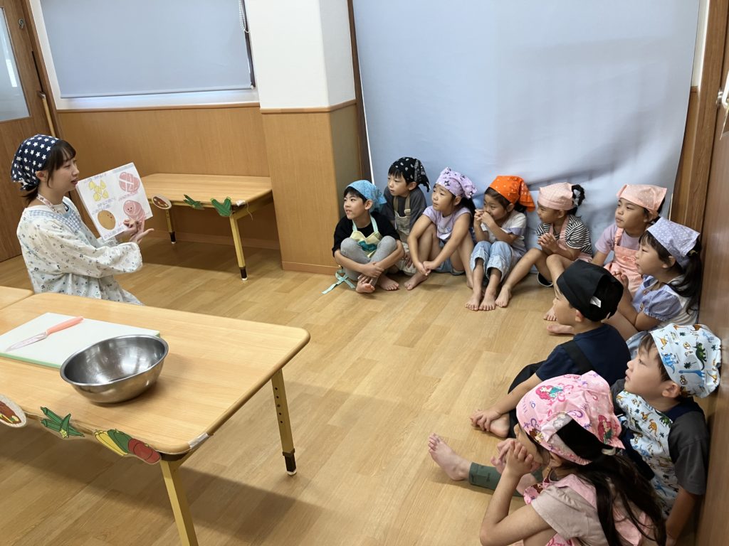 先ずは「カレーライスのうた」の手遊びをして、カレーには何の具材が入っているのかを確認しました☺️