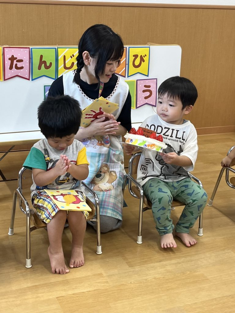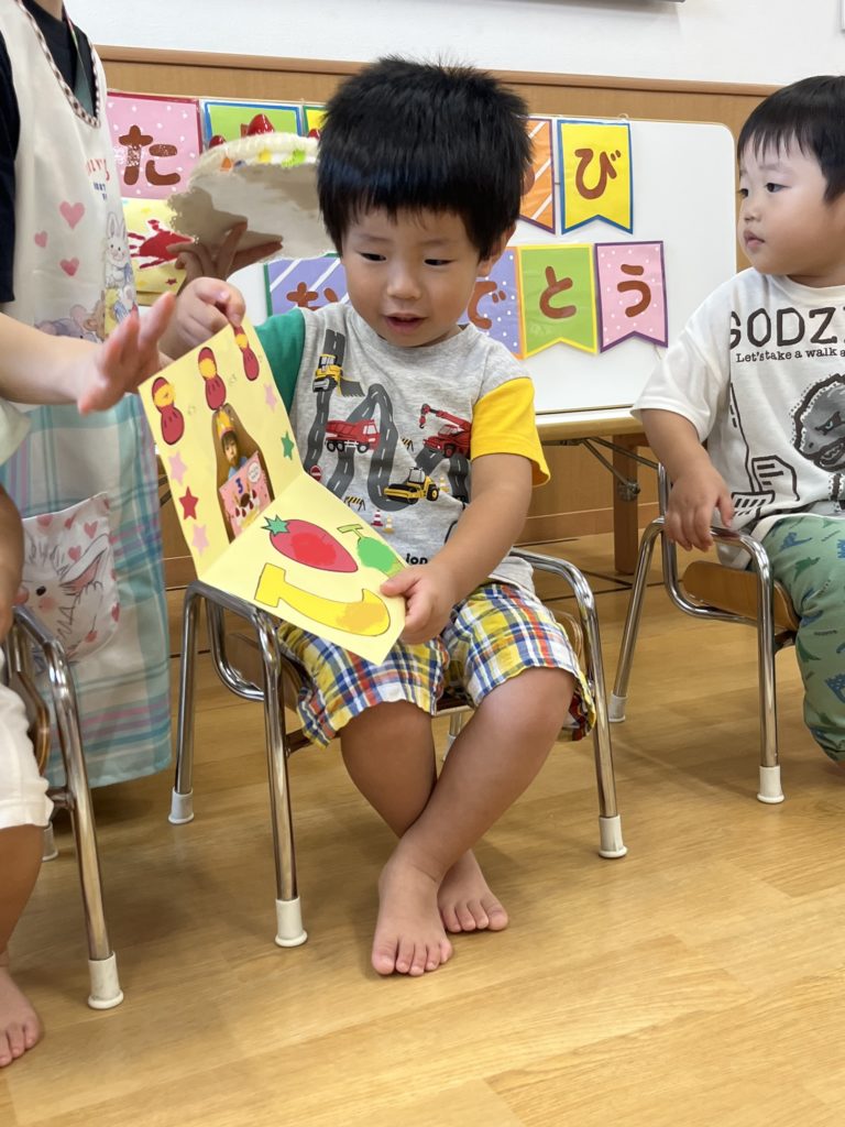 今日は9月生まれと8月のお誕生日会に参加出来なかったお友達のお誕生日会を行いました♪