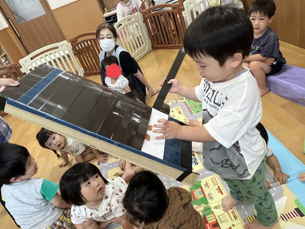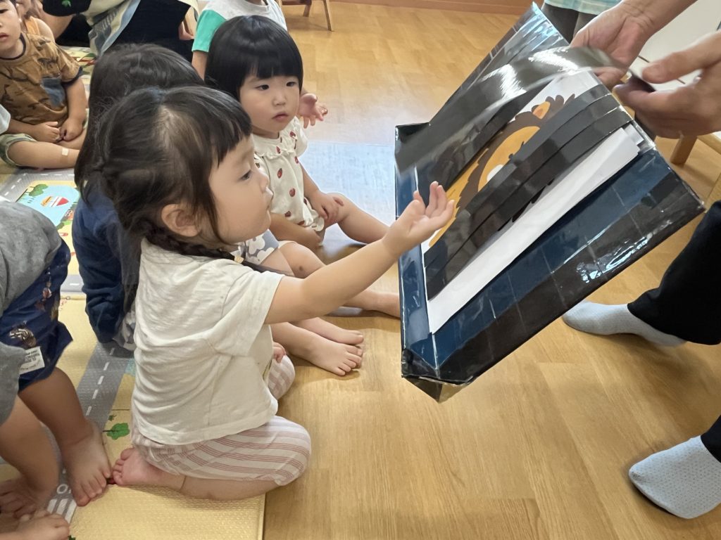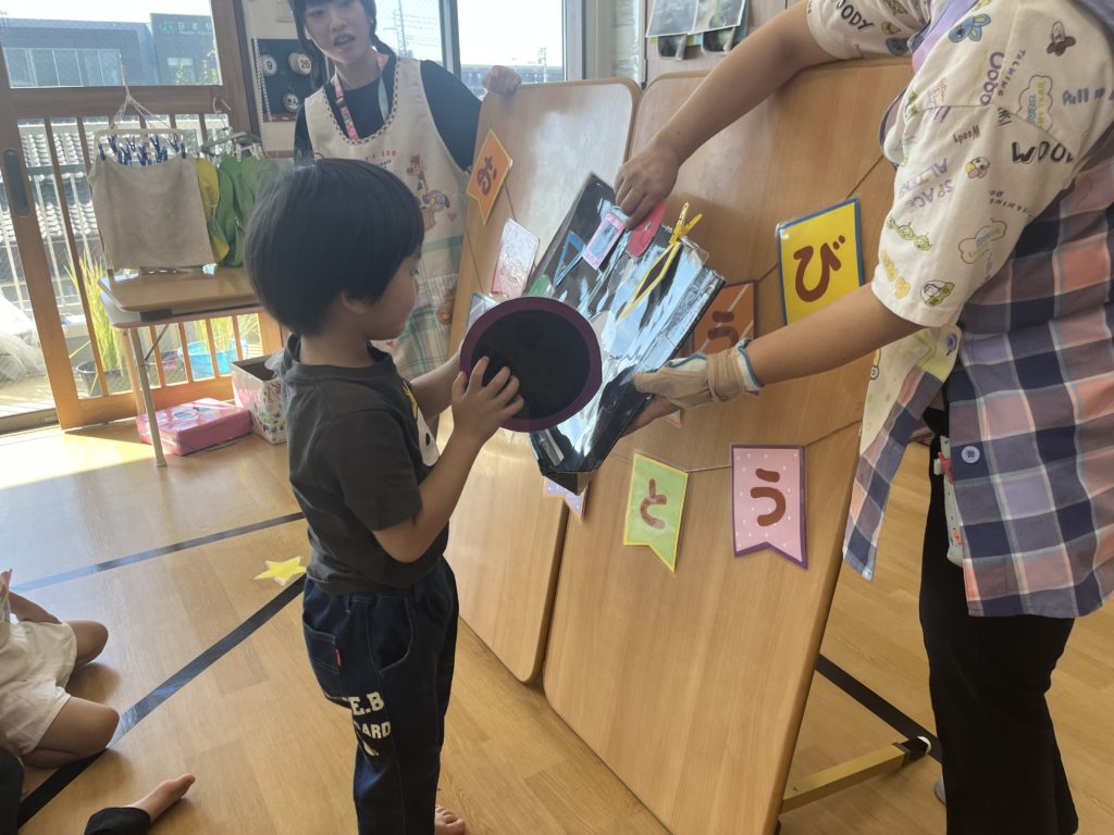 まずは季節のうたを歌ったり、「やきいもグーチーパー」の手遊びを行い季節を感じました🍂