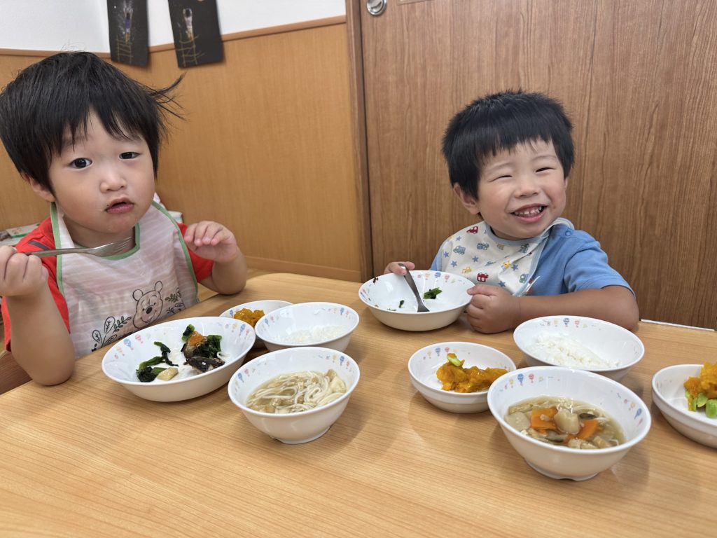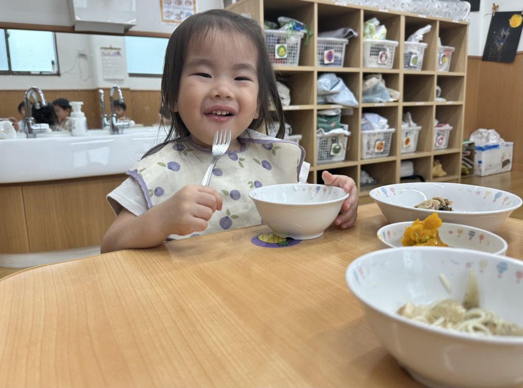 今日のスープには麺が入っていたので、「これめんめんはいってるよ!おいしいね☺️」とお友だちと話しながら楽しく食べていました✨