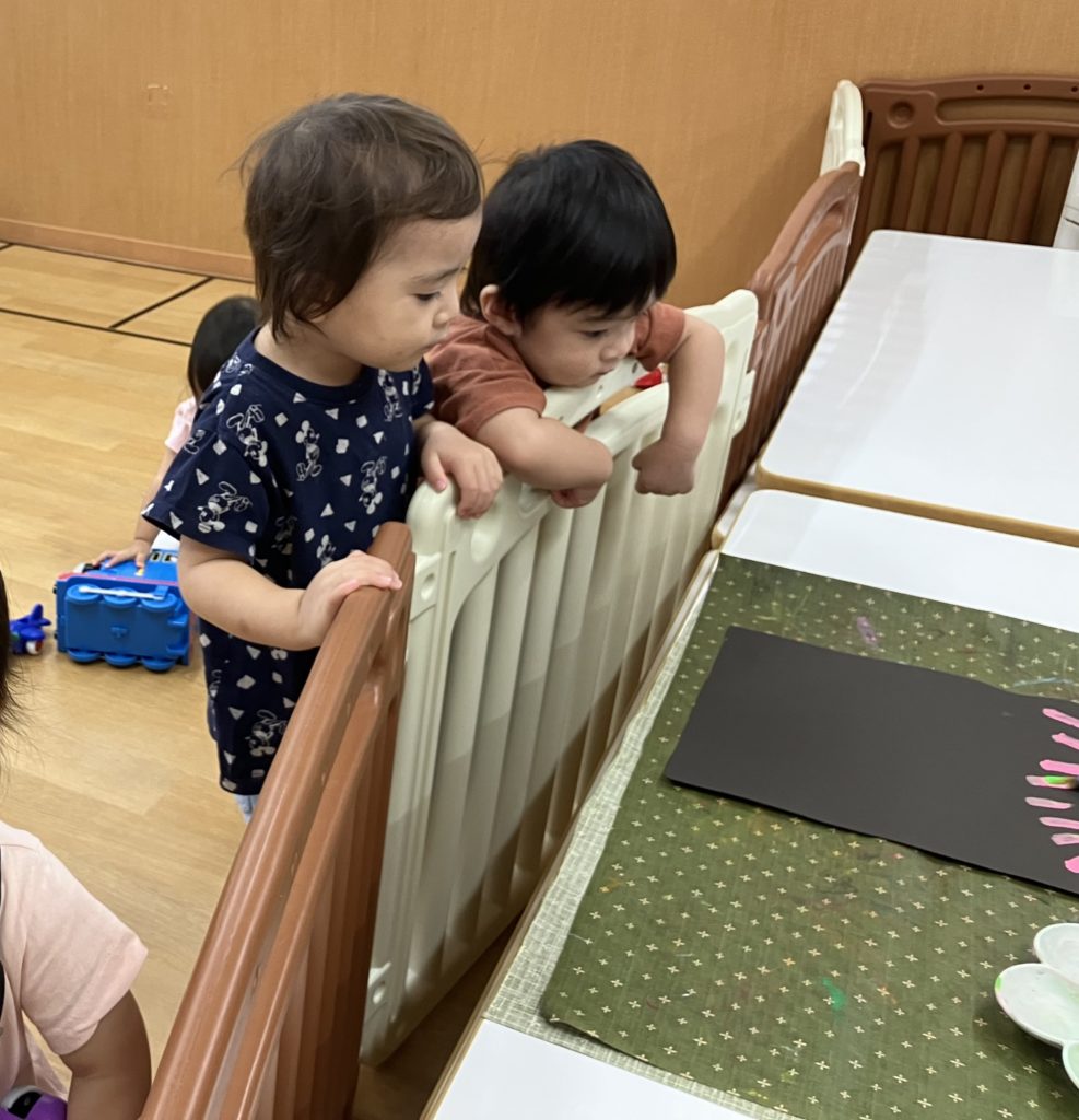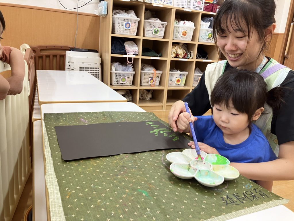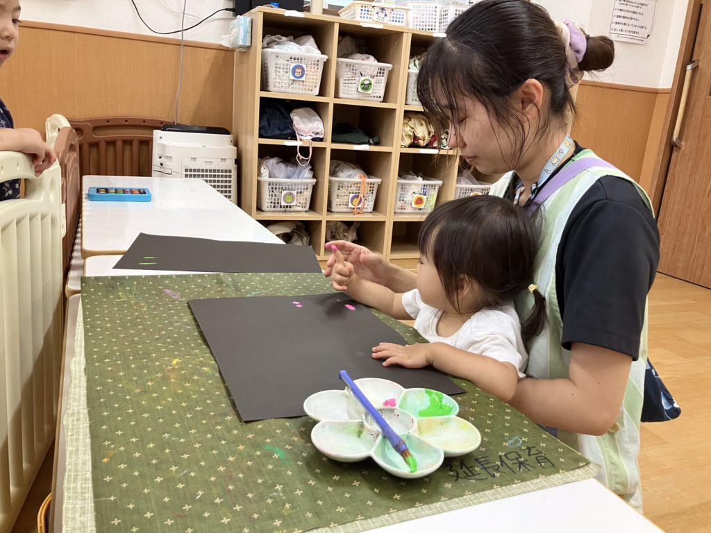 まずは製作✨指に絵の具を付けて描き描き🎨