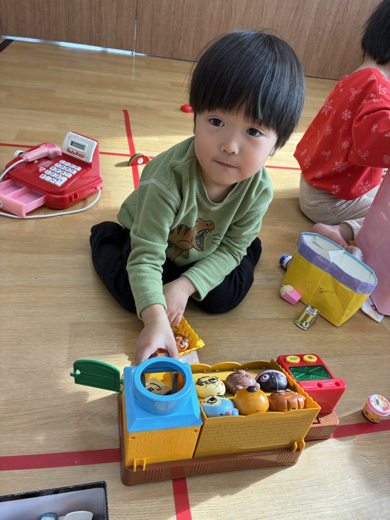 お料理を作って「ごはんだよー!」とお友だちを呼んだり、パン屋さんになったりして沢山遊びました✨