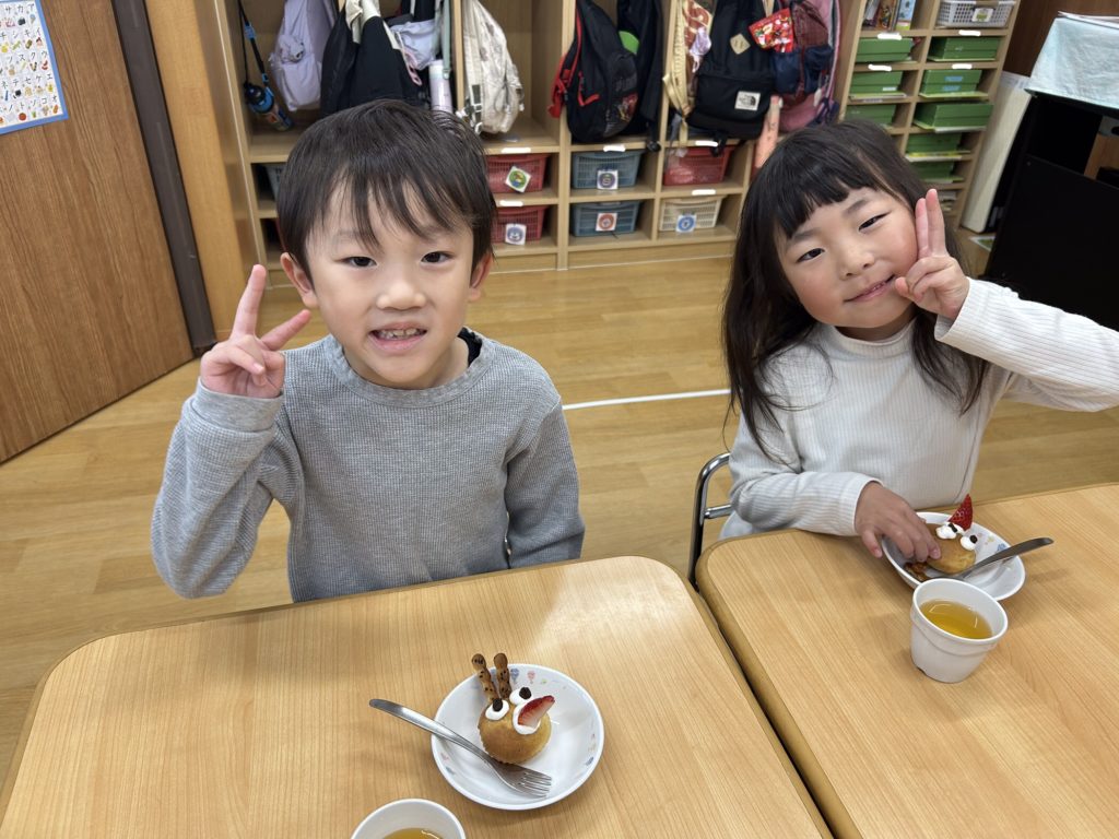 食育の一貫としてトナカイの顔は自分たちで飾り付けしましたよ✨
