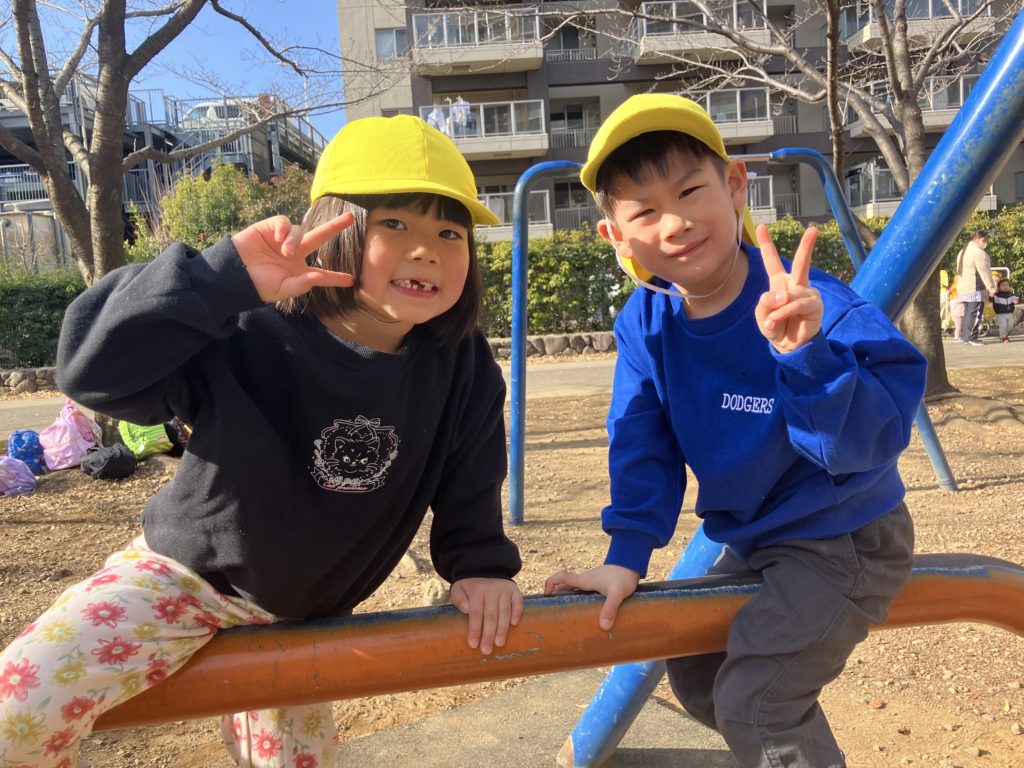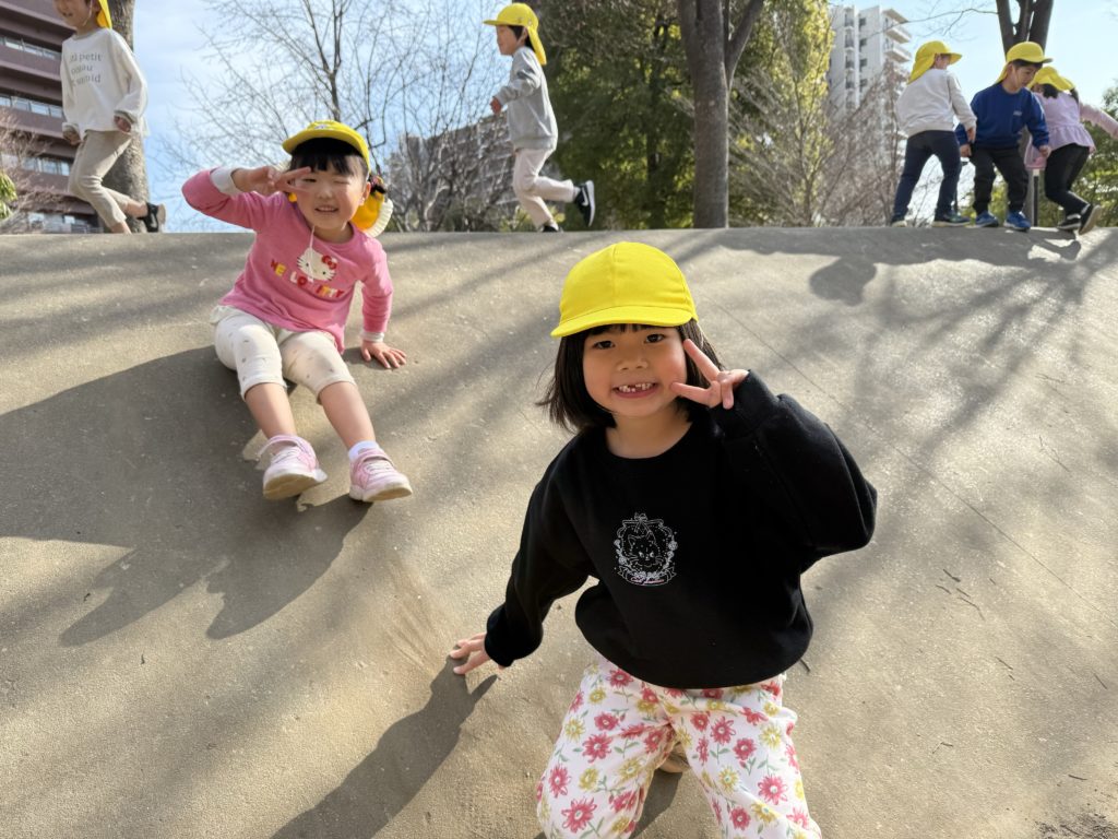 久しぶりの散歩と公園遊びで、公園行くよと伝えると「やったー♪」ととても嬉しそうな子どもたち😊