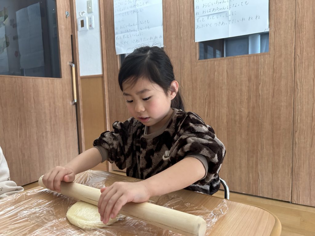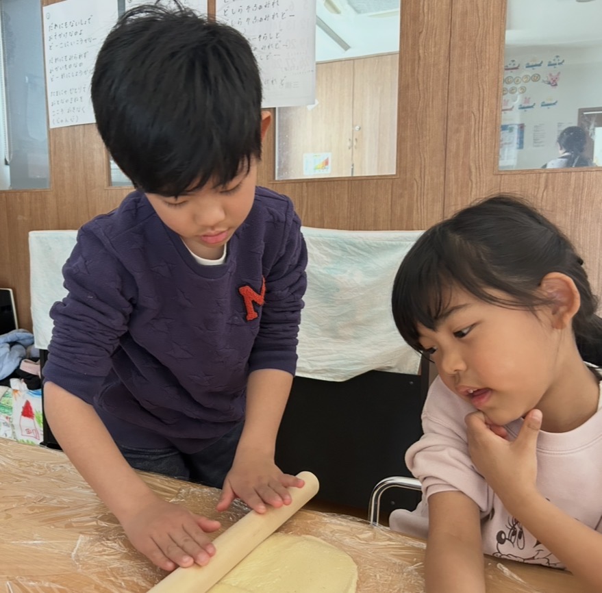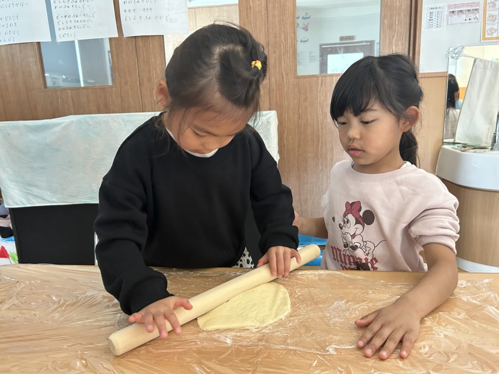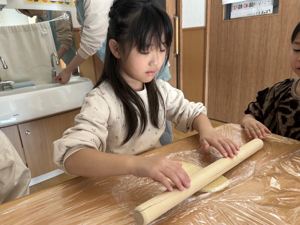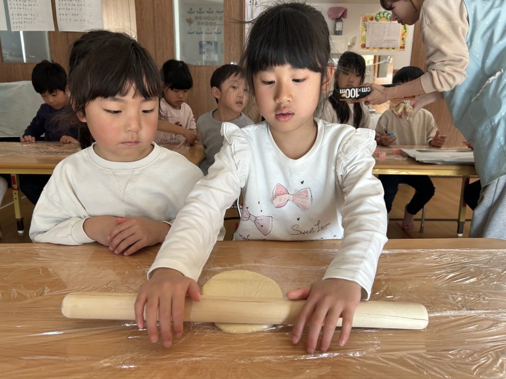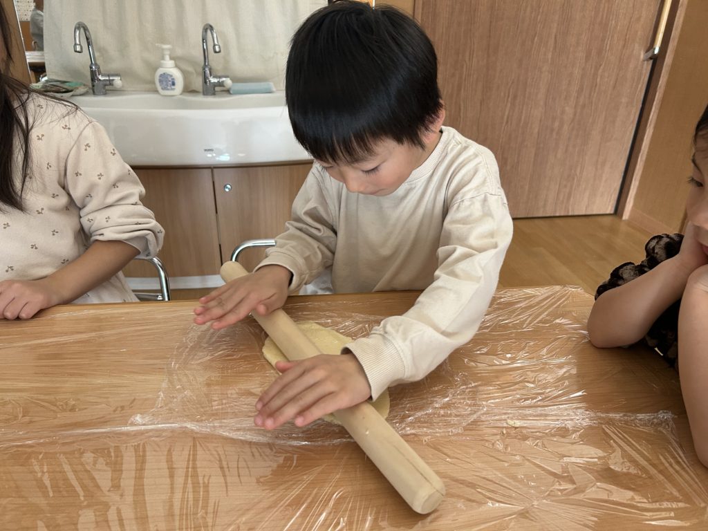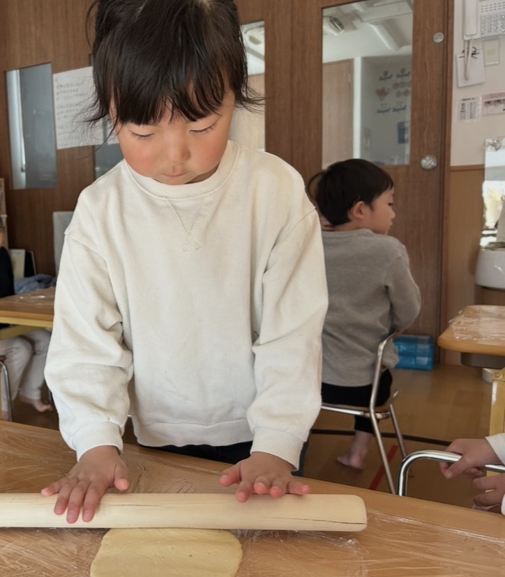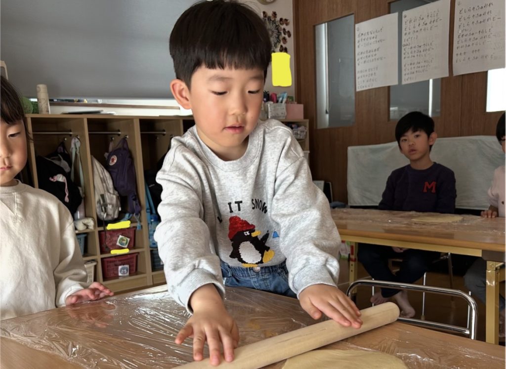 その後はめん棒を使って、生地を1人ずつ伸ばしました🥣