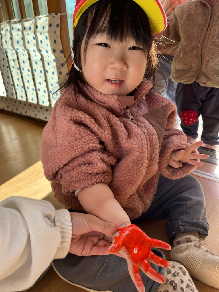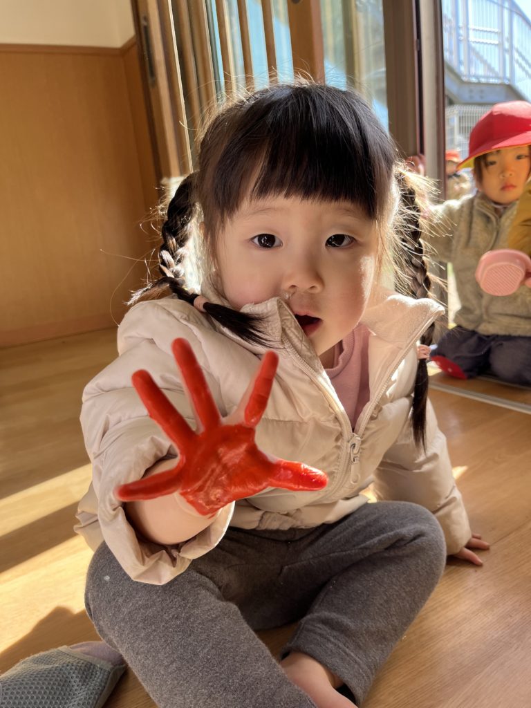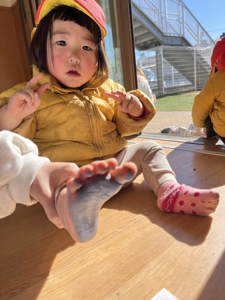 その後は久しぶりの足形•手形取りをしました🎨「くすぐったい!」「オレンジだね」等、沢山お話ししながら行いました!