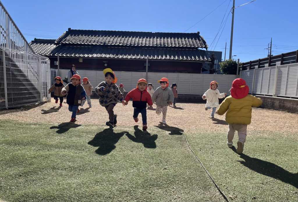 園庭でも遊んで、最後はアザラシ組さんも一緒に「よーいどん!」
