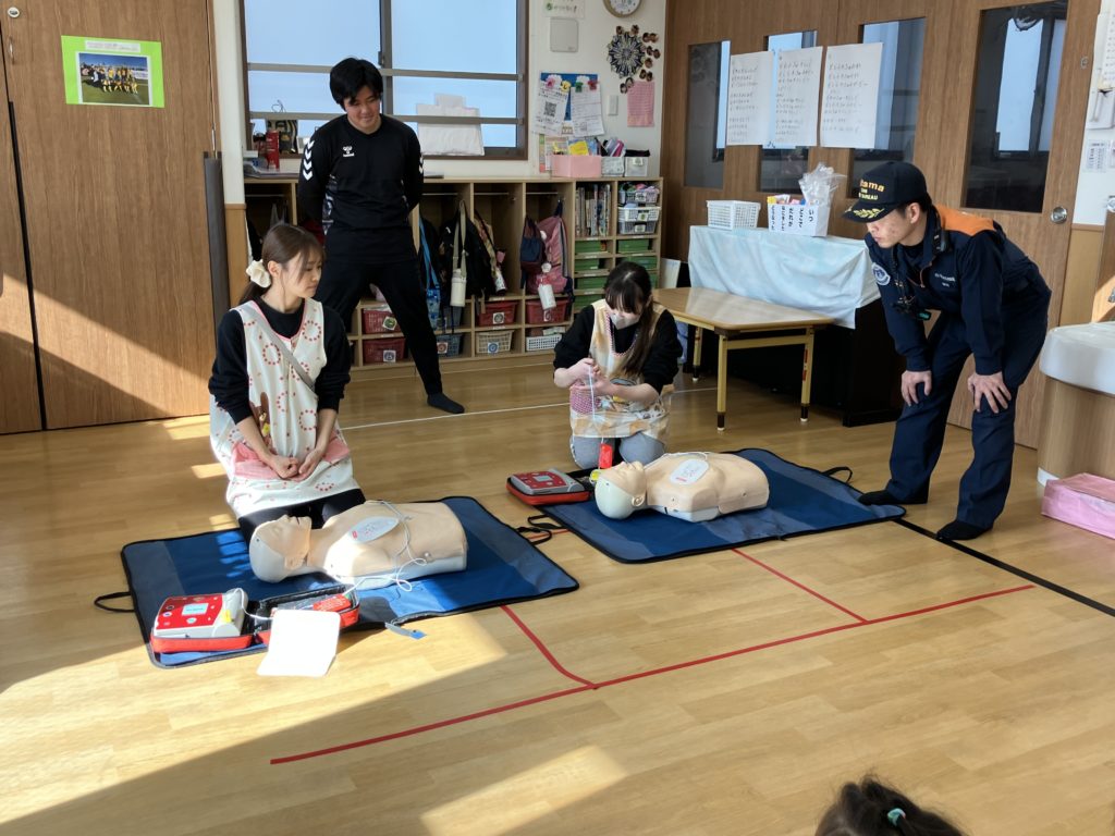 その後は幼児クラスのみ、AEDの使い方について勉強をしました。