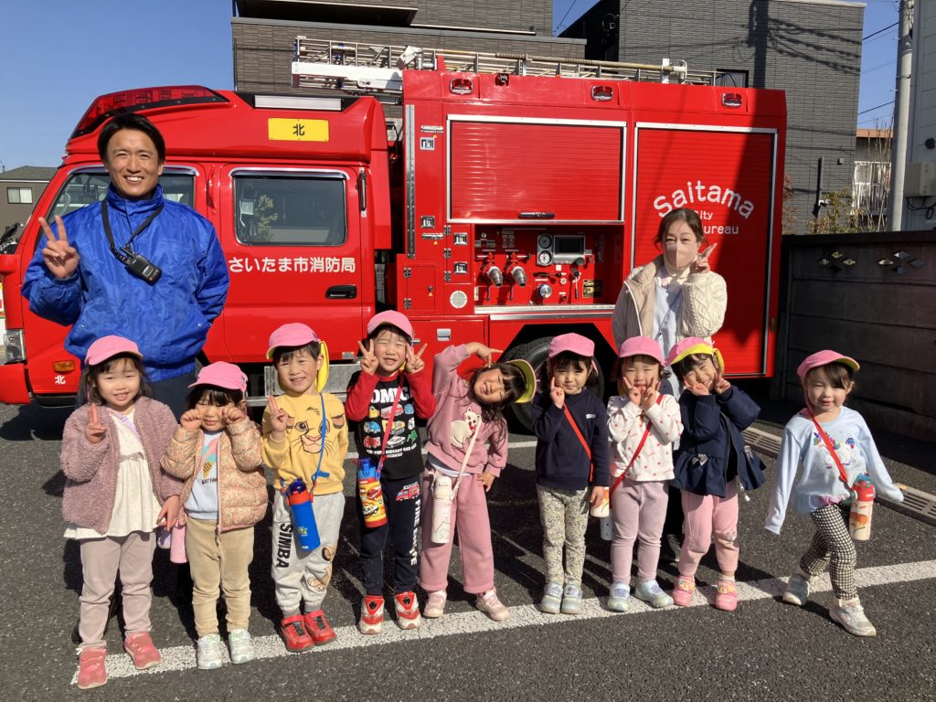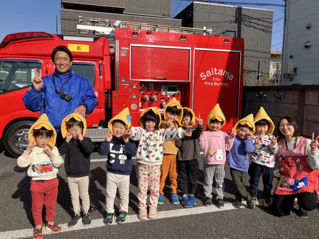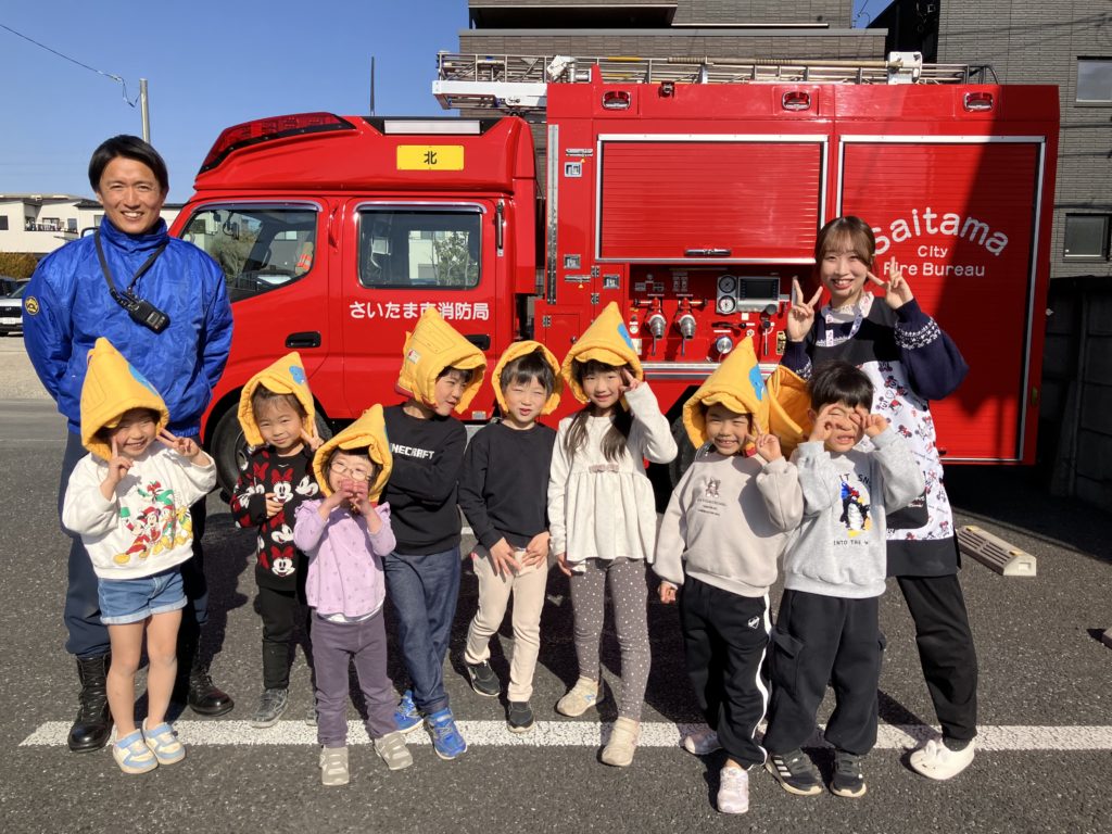消防車と写真を撮ったり、帽子を被せてもらったり、、、。