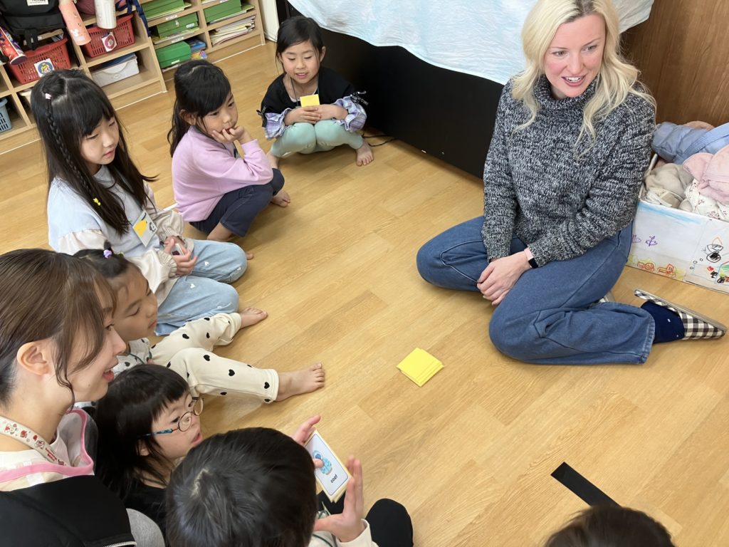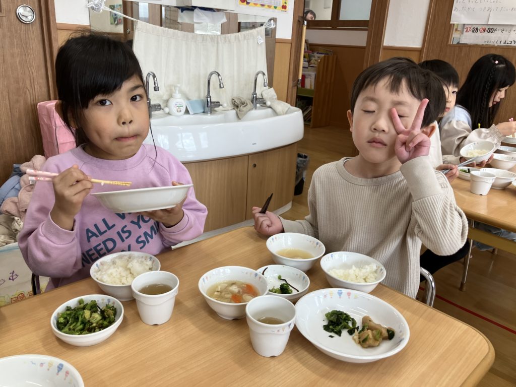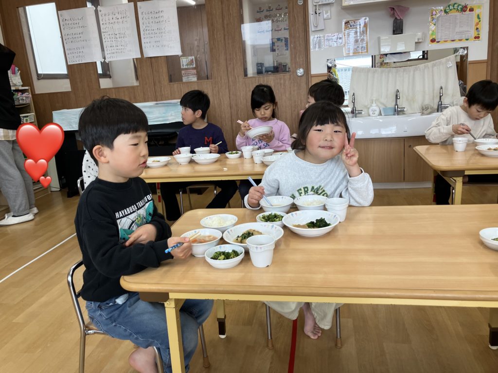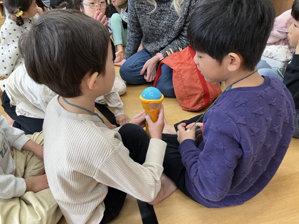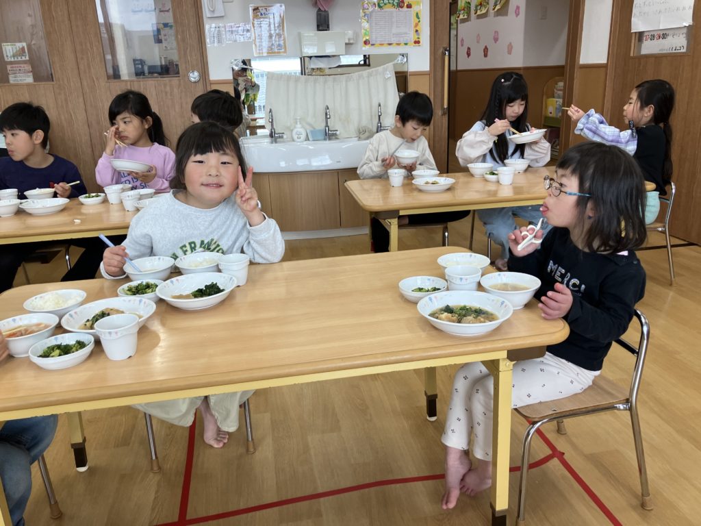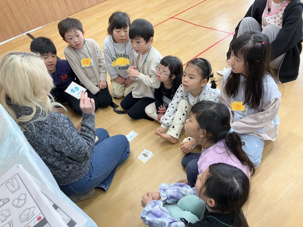みんなの大好きな英語の時間では、お互いに自己紹介をしたり物の色を言ったりして楽しそうでした!卒園式練習では、座り方の練習をしました。初めてやる事に戸惑いながらもやっていました♪