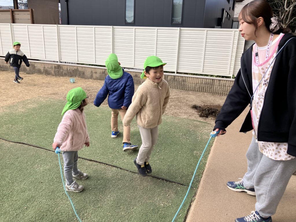 園庭では、お友達と虫探しをしたり縄跳びなどで遊んだりしていましたよ✨