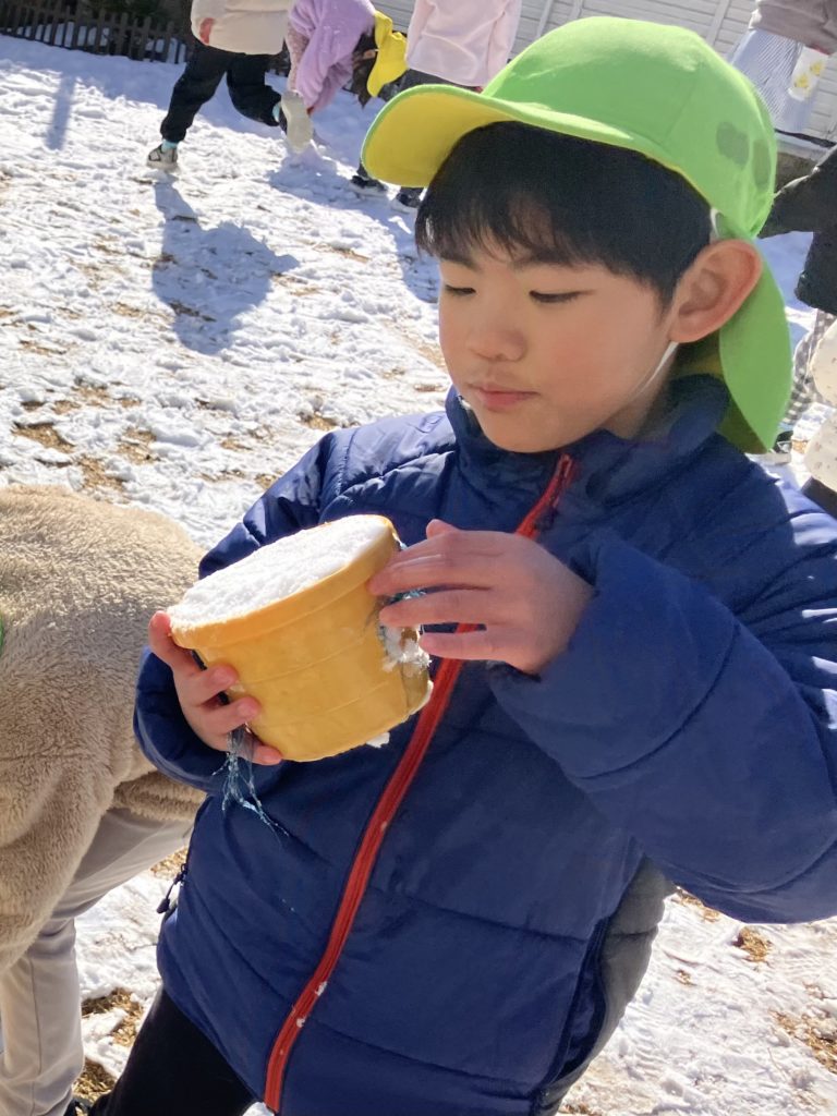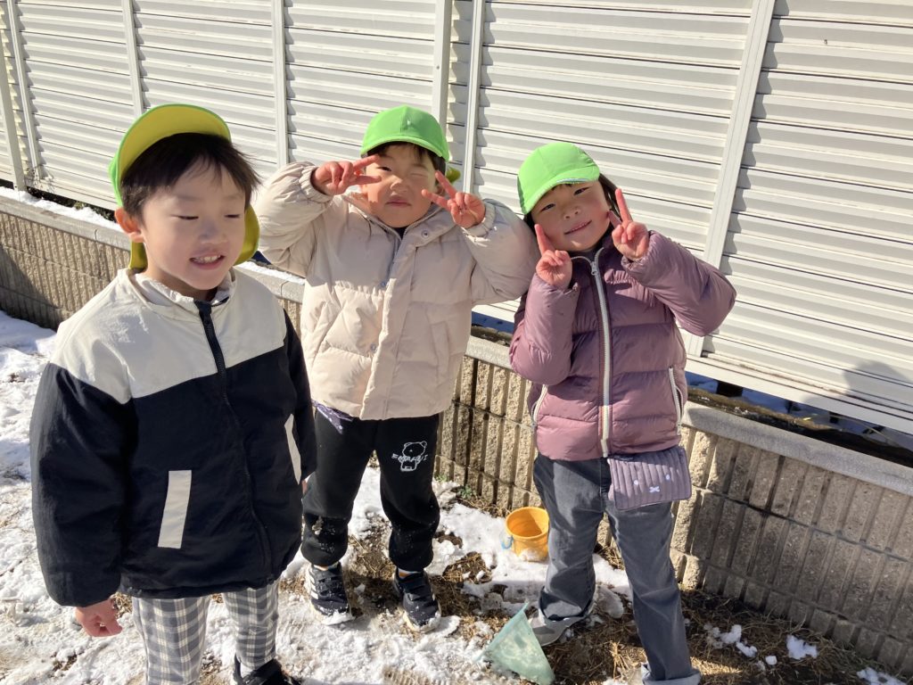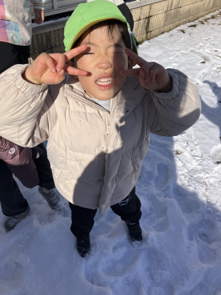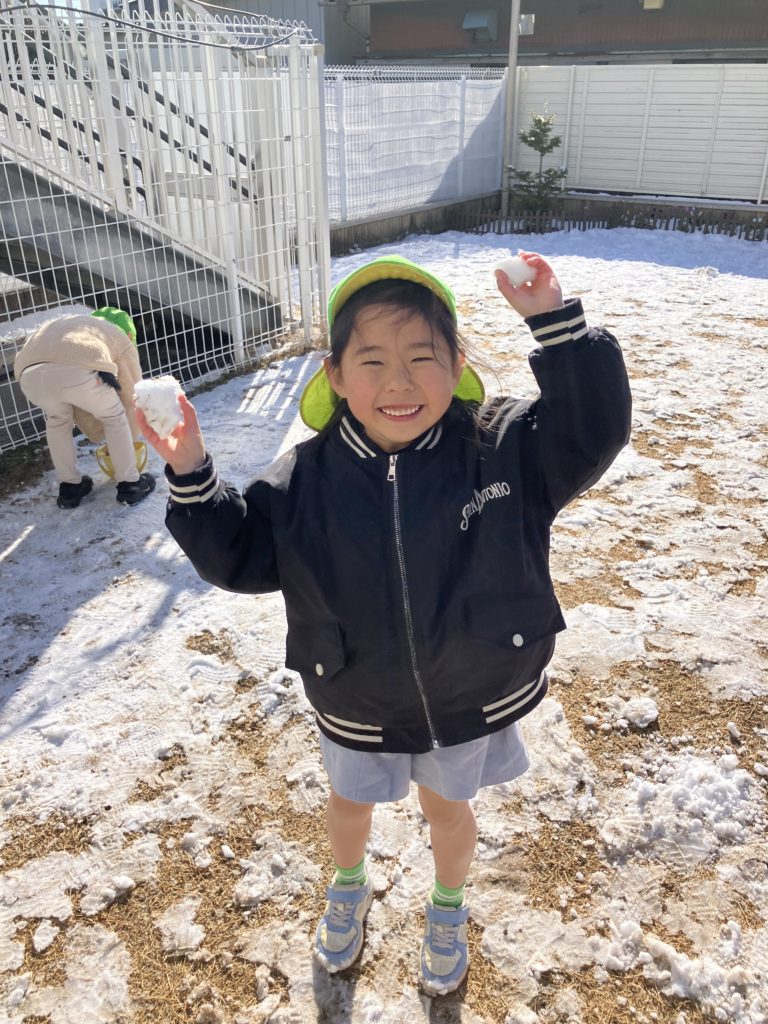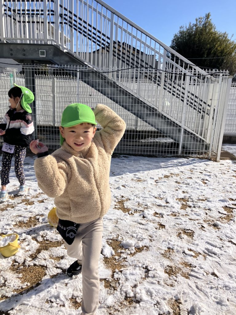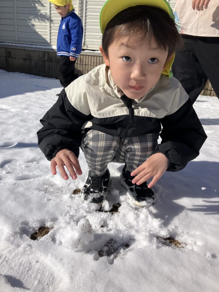 今日は、昨日降っていた雪が園庭に積もっていたので、雪遊びをしました❄️雪を丸めて雪だるまを作ったり、雪合戦をしたりと寒さに負けず元気いっぱい遊んでいました✨
