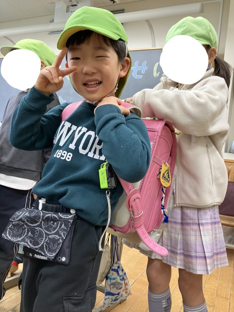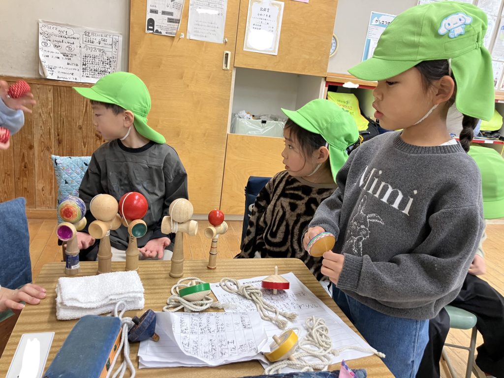 ランドセルの背負い方や、雑巾の絞り方、ほうきやちりとりの使い方等、身の回りの事を自分で出来るように教えてもらったり、コマやけん玉などの遊び方も教えてもらい、とても楽しむ事が出来ました☺️