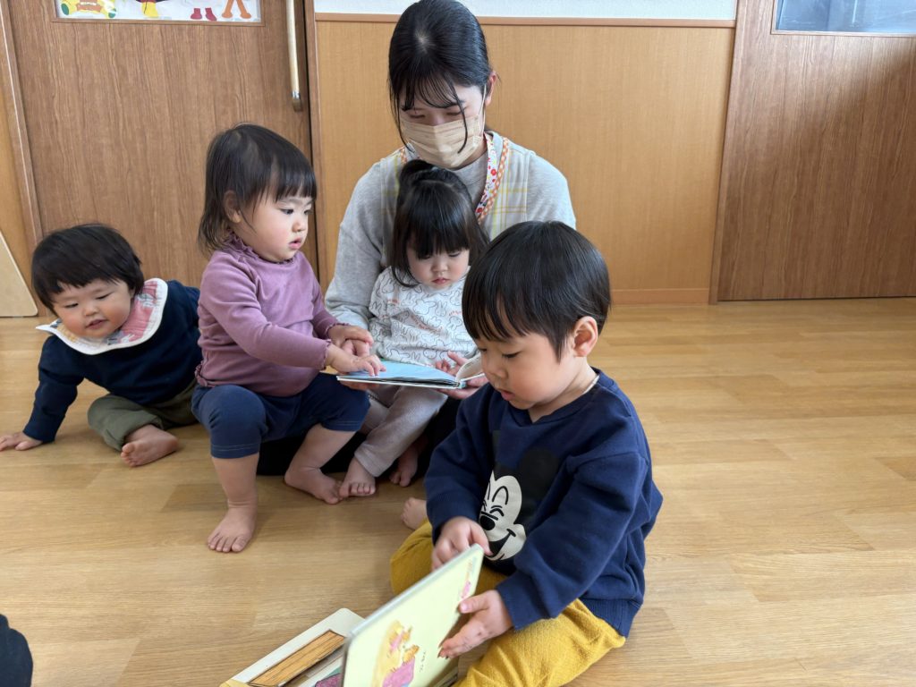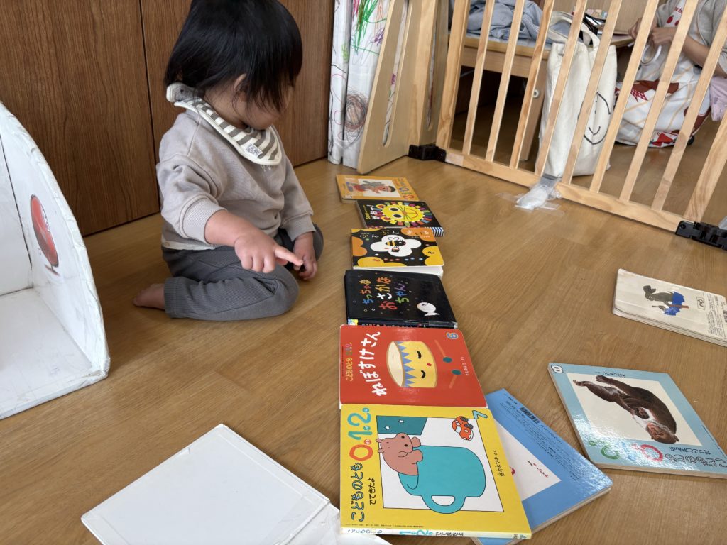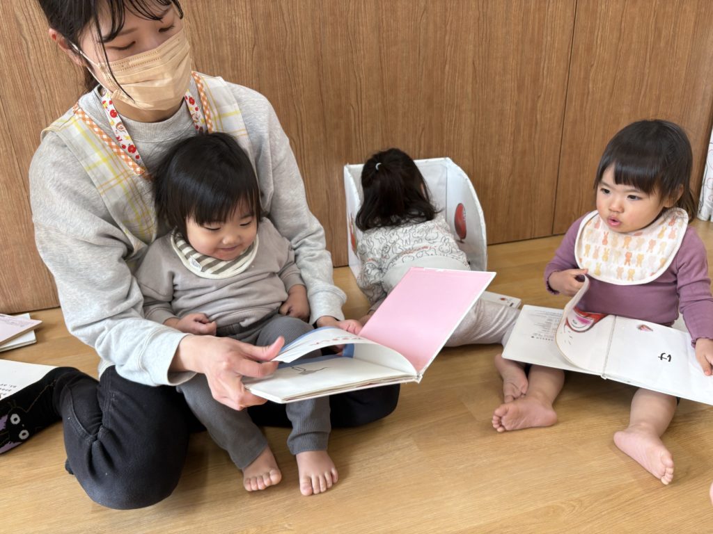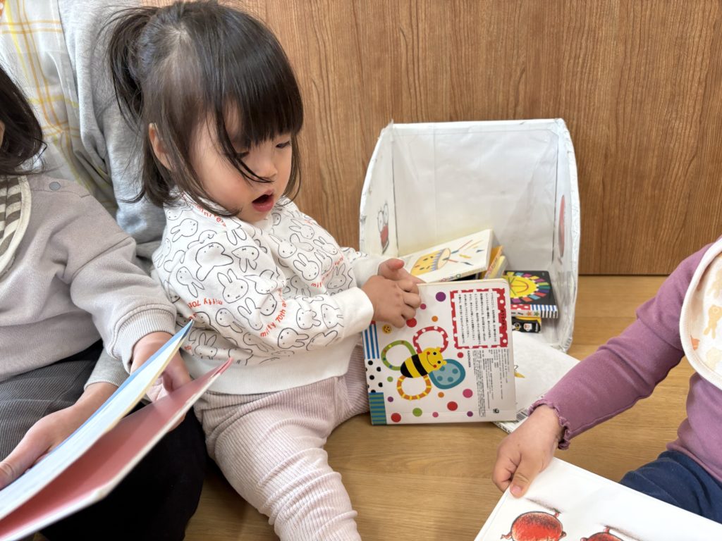 自分が好きな絵本を読んだり先生に“読んで”と持って行って読んでもらったりしていました🌼