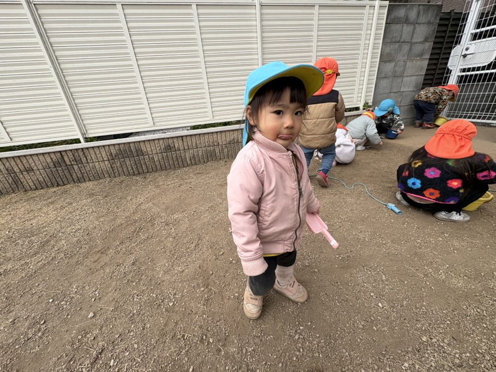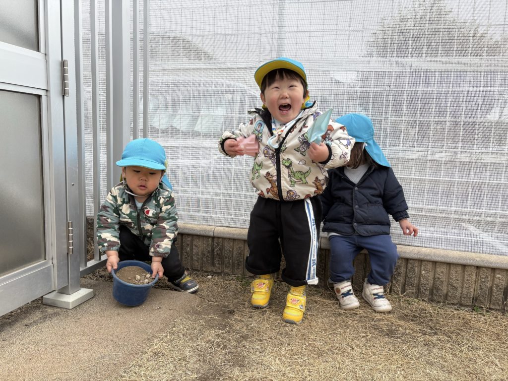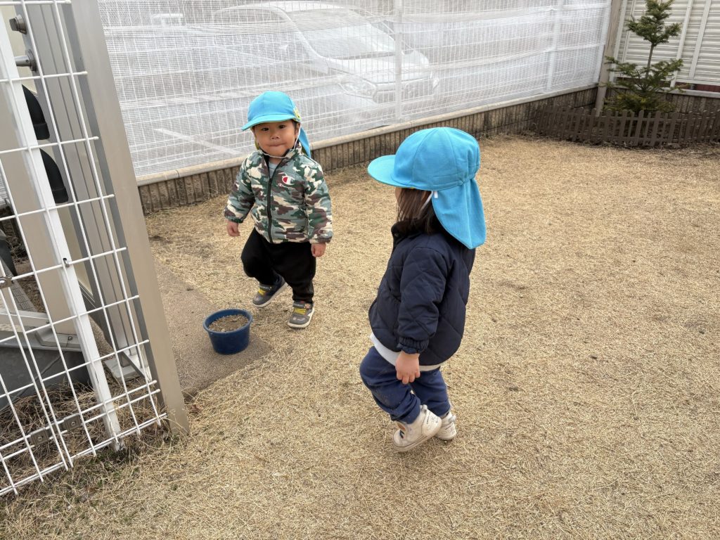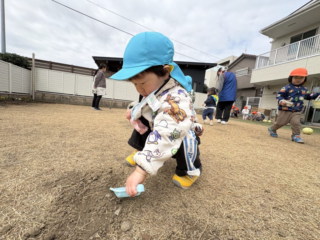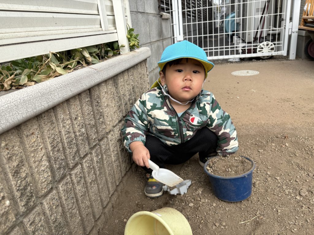 大好きな園庭では、砂や石をバケツに沢山入れたりお友だちと走り回るなどをして楽しそうでしたよ♪