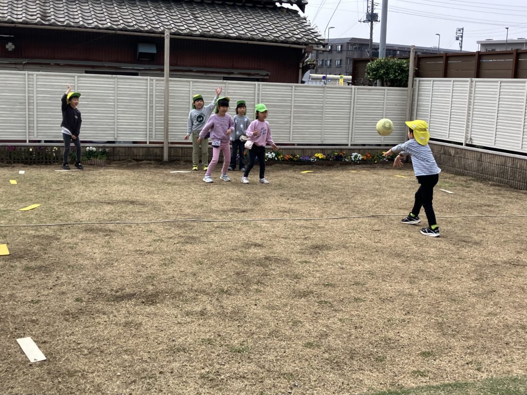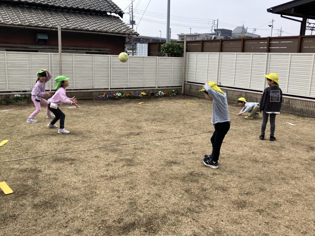 正課体育では、全員でドッチボールをして遊びました✨投げるところを考えながらボールを投げたり逃げたりしていました!