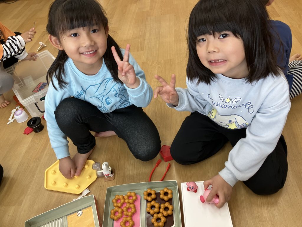正課体育までの間、お部屋で仲良くカルタやおままごとをしたりして遊びました🍩