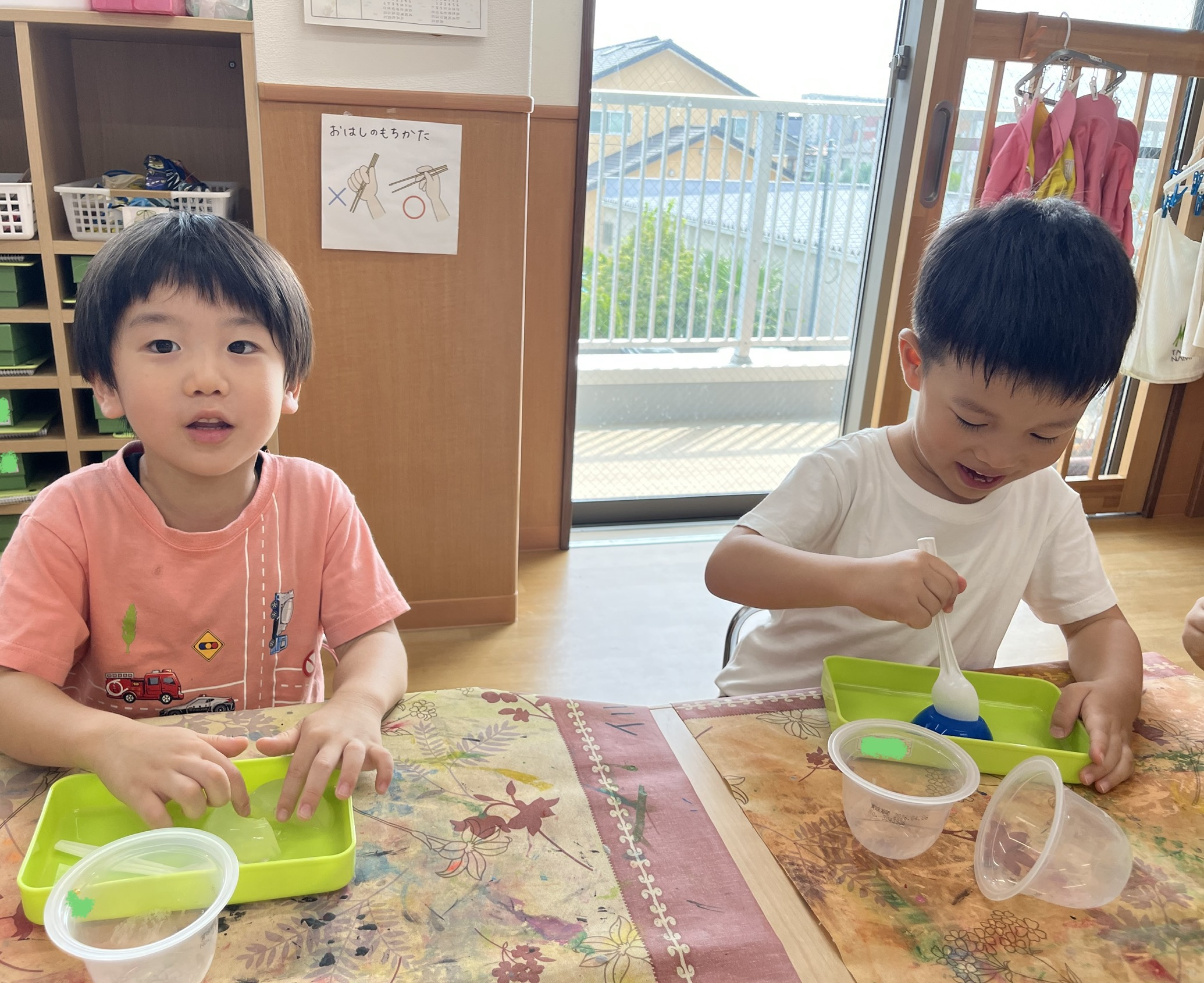 今日もとても暑い天気でしたね😵 イルカ組では少しでも涼しく過ごせるように寒天遊びを行いました♪ 寒天をみると「 […]