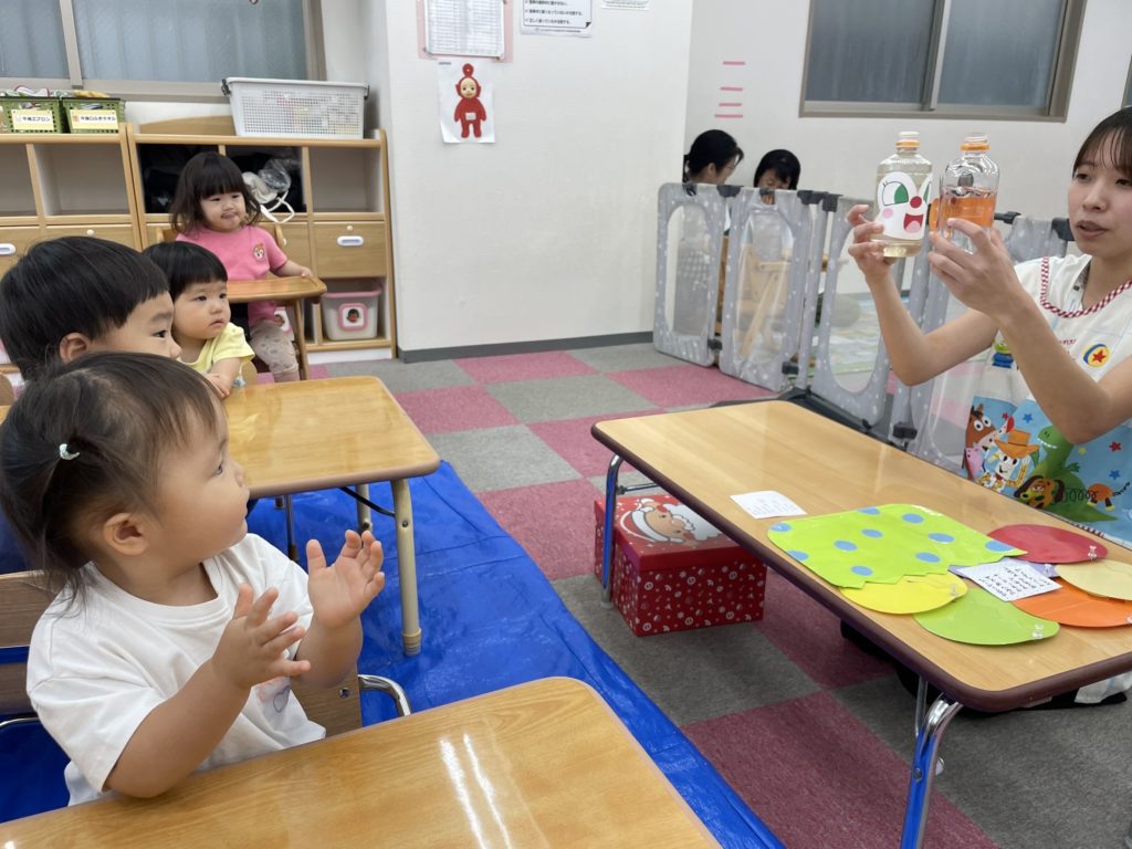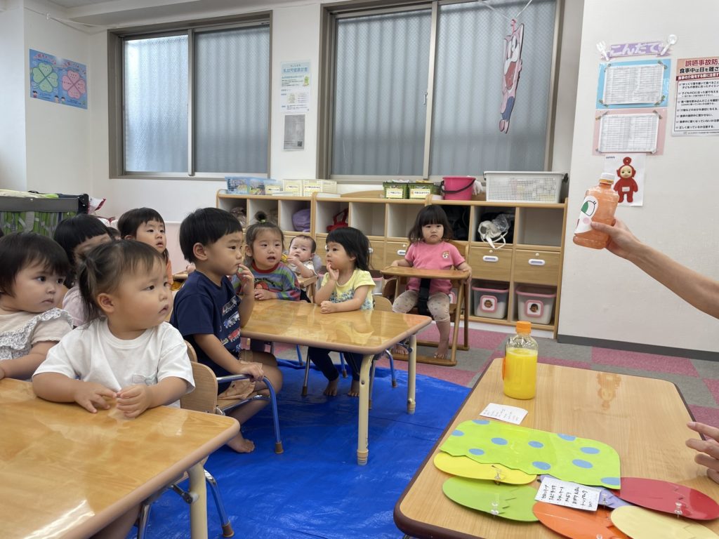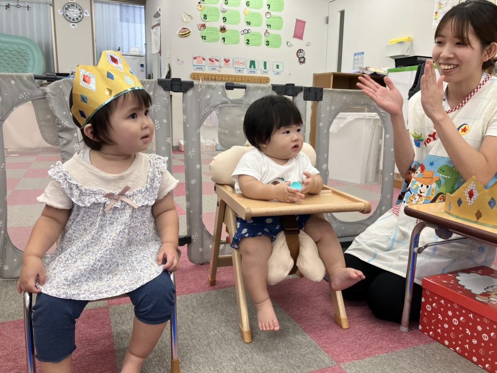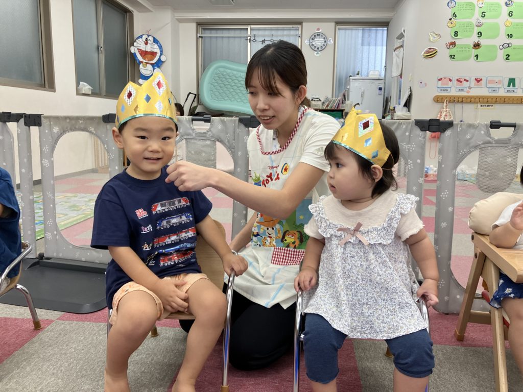 今日は8月生まれのお誕生日会がありました。今月の主役は4人のお友だちです。