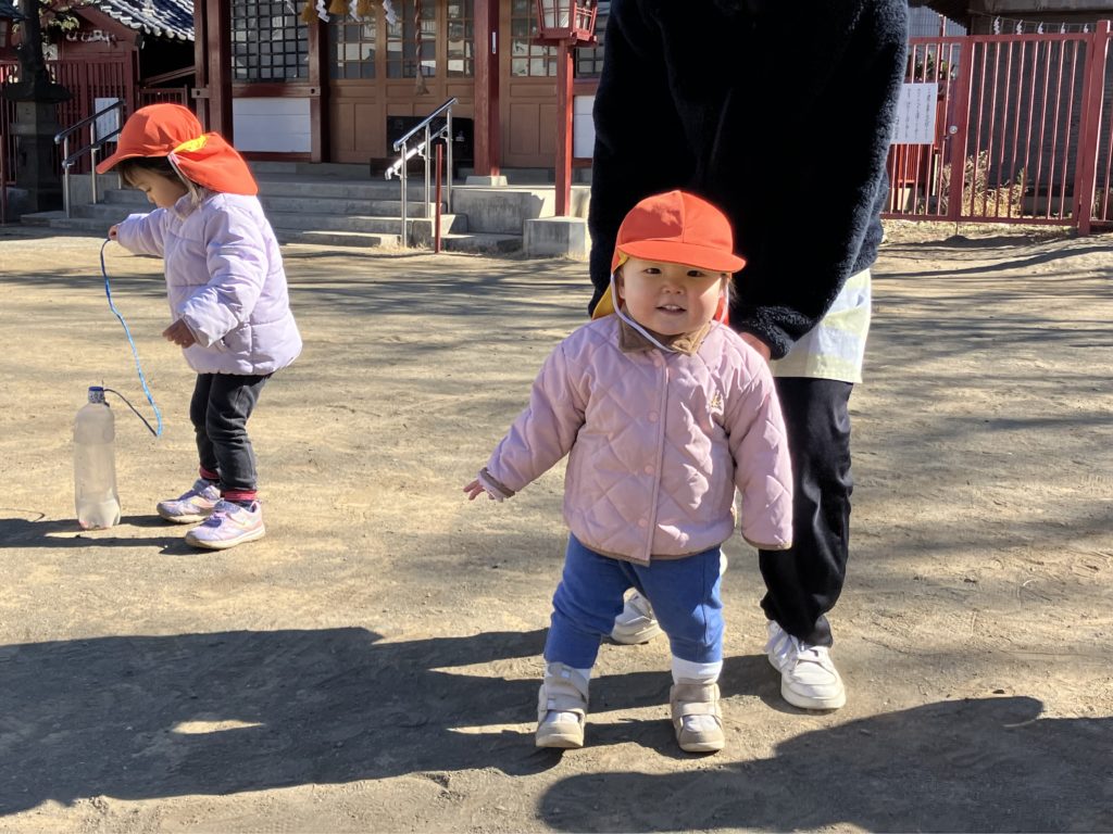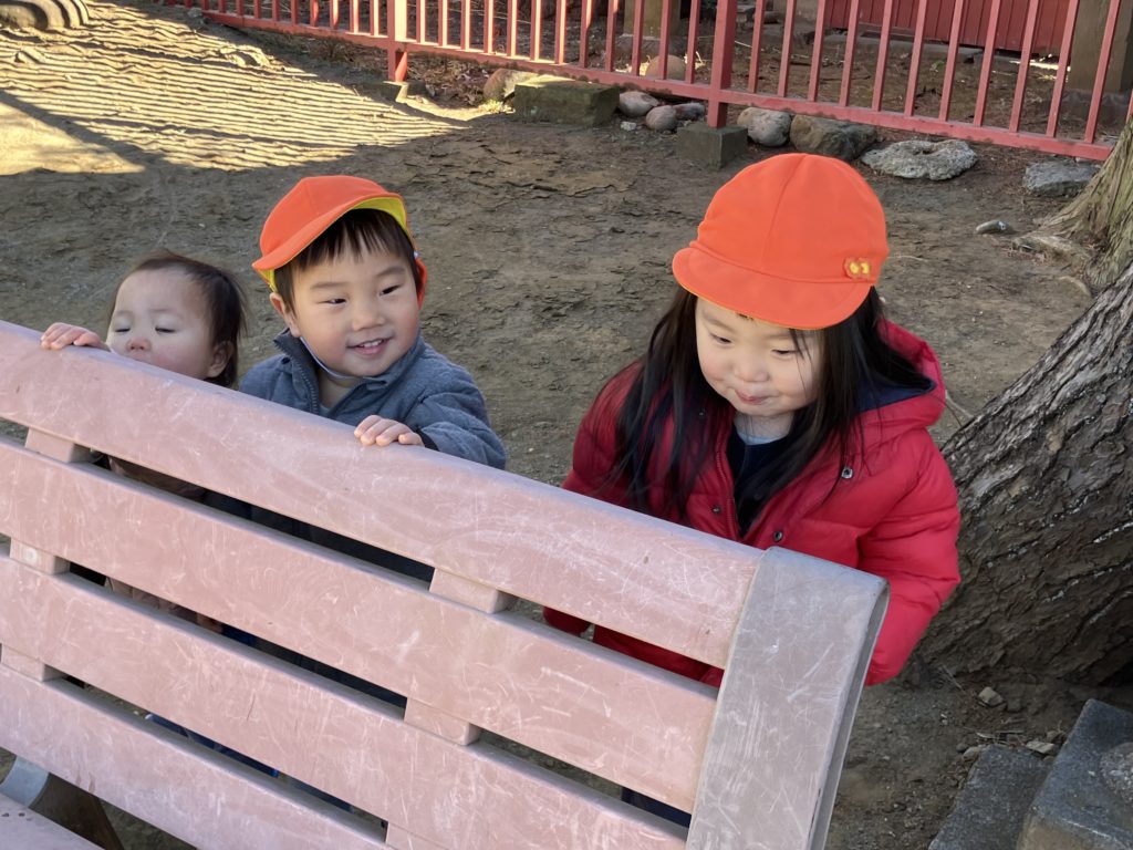 朝、みんなの登園を待って遊んでいる中、「今日公園行くって!」と、先生が話すのを小耳に挟んだ子どもが、周辺の友だちに嬉しそうに伝えていました☺️