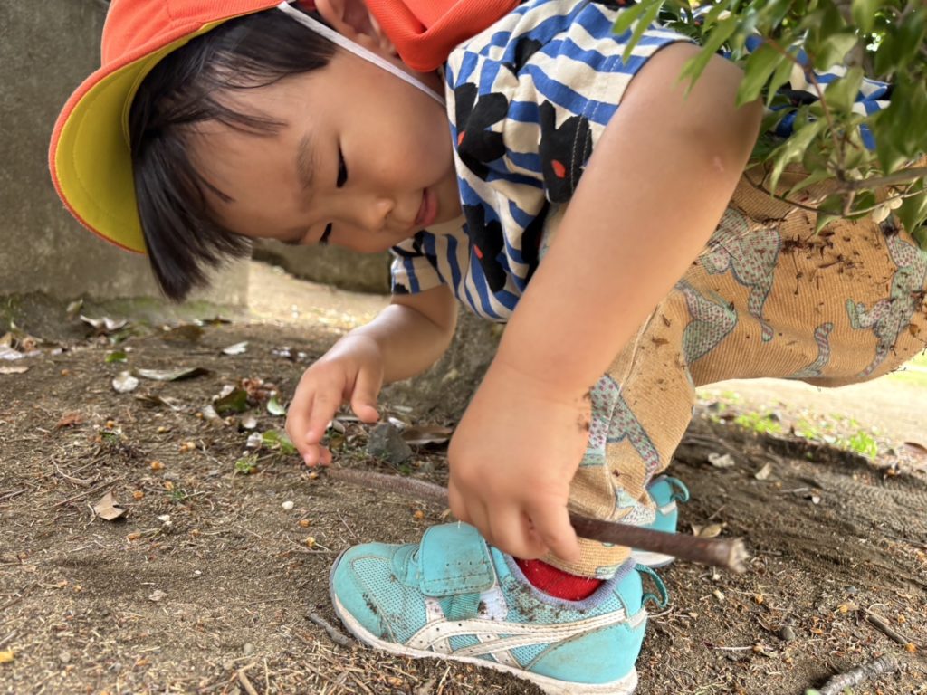 今日は天気が悪くなる前に、公園に遊びに行きました!公園には色んな発見があり、「アリさんいるかな?」と話す子どももいました🐜