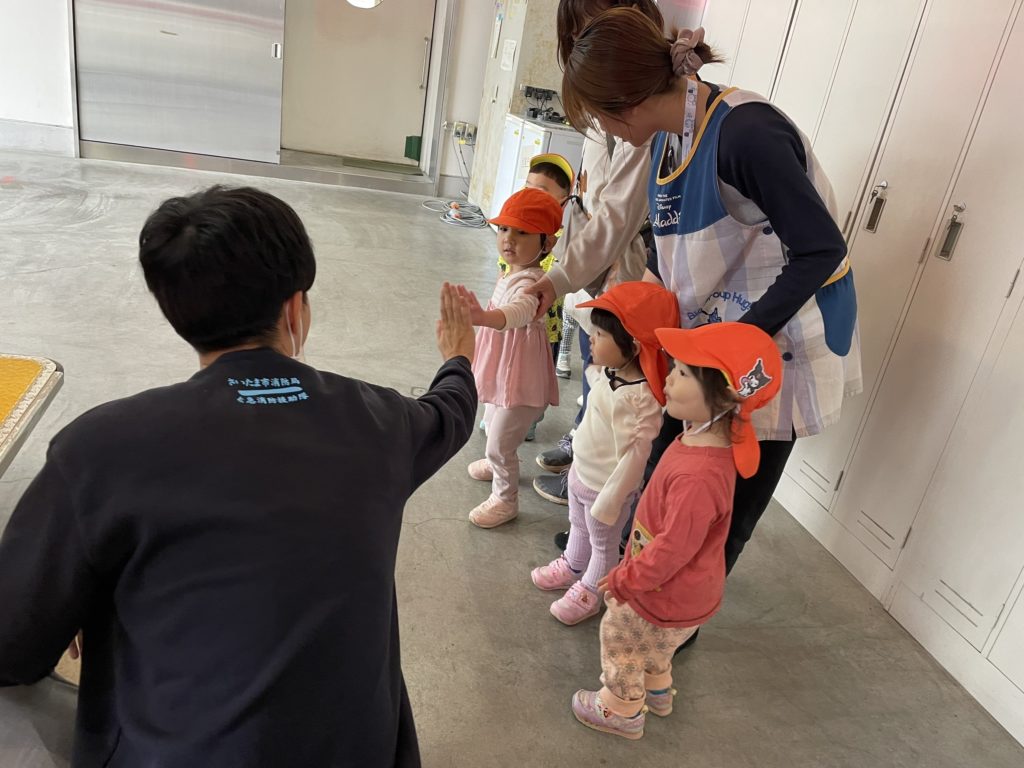 消防士さんたちとお話しをしたりハイタッチ🤚したりと沢山触れ合いました!また、消防署にお散歩に行きましょうね💕
