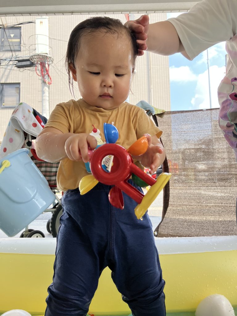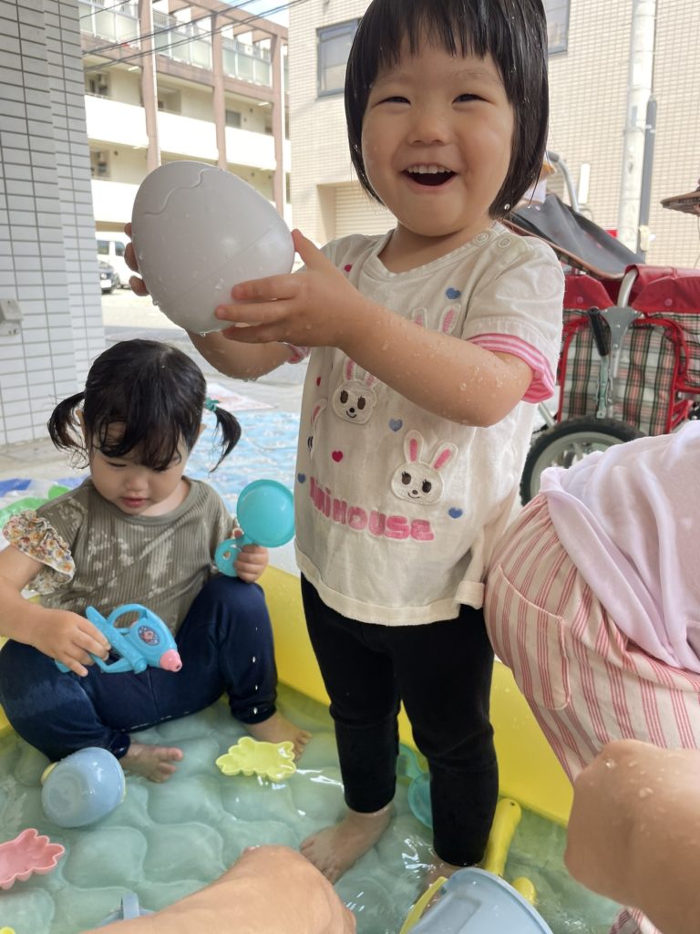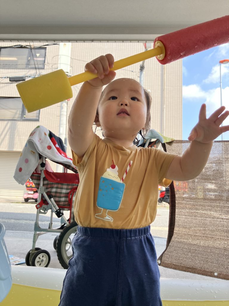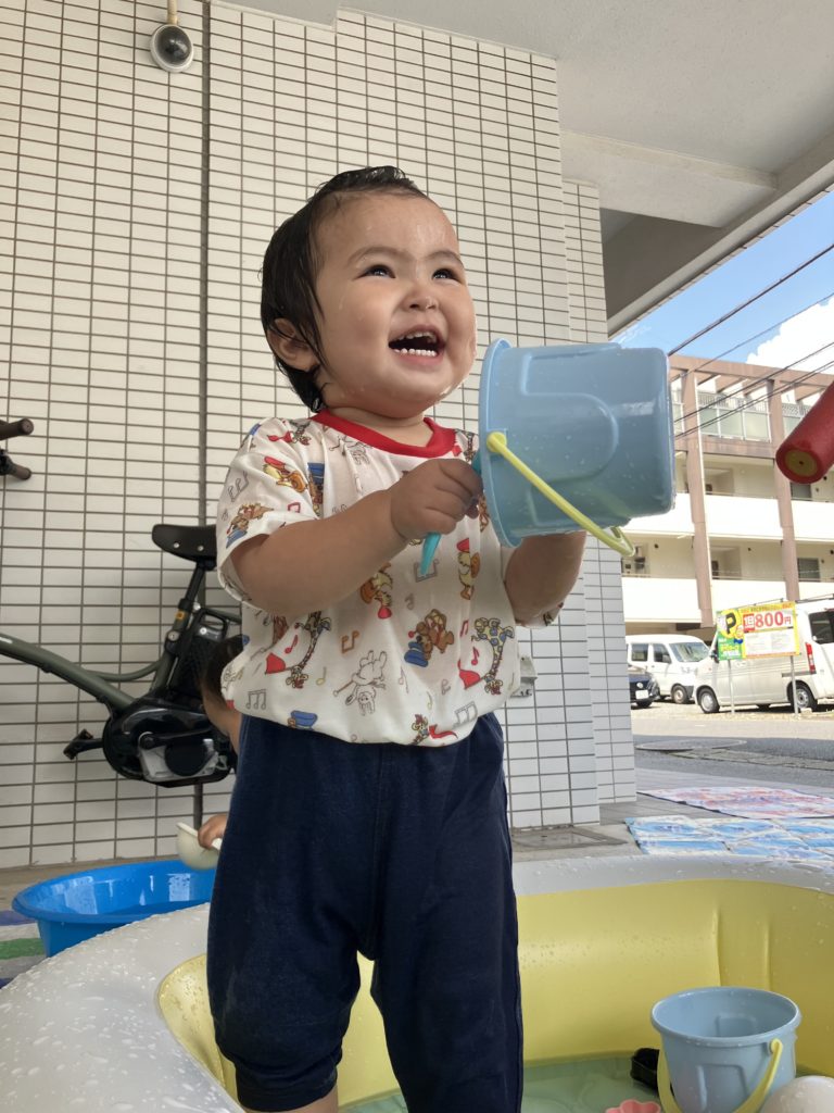 今日も大好きな水遊びをしました!🪣💦