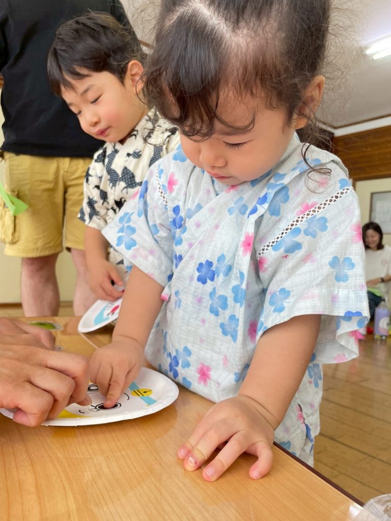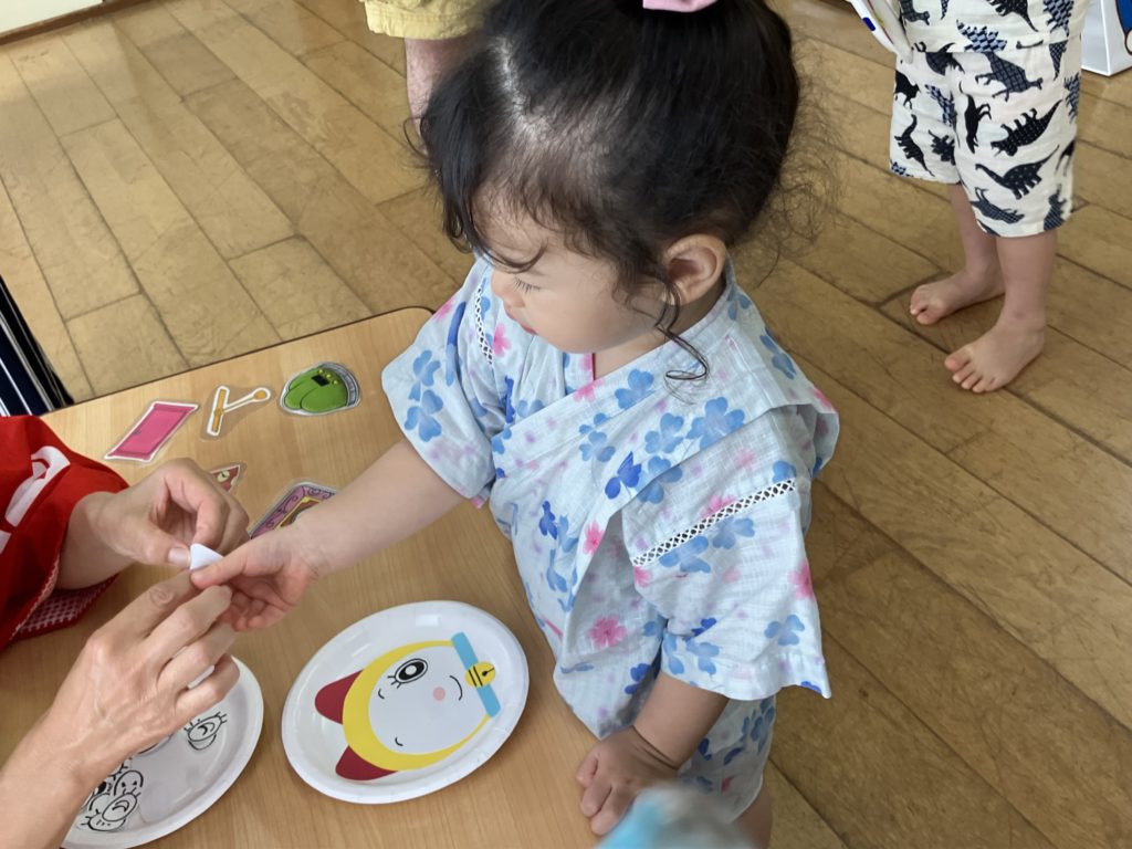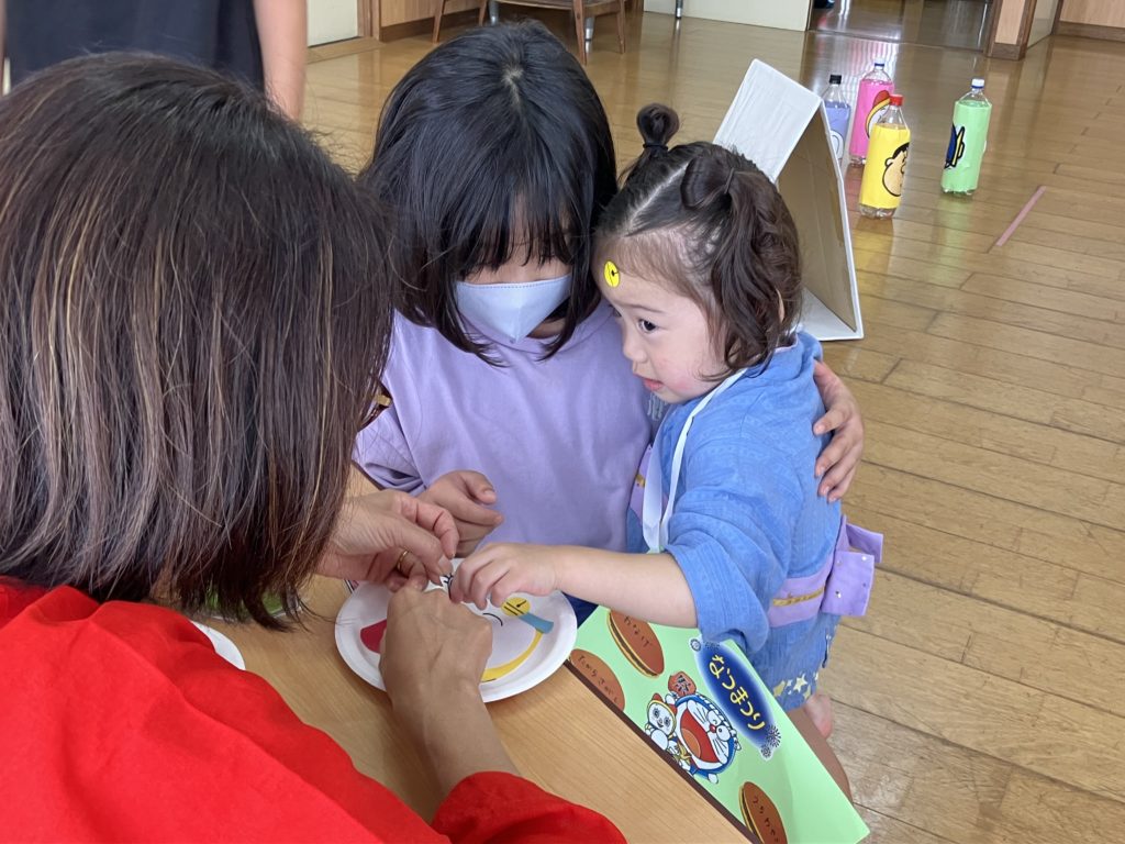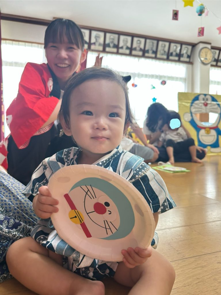 うちわ屋さんでは、ドラミちゃんとドラえもんのどちらかを選んでもらい、うちわの裏には好きな道具を貼ってもらいました!子どもたちそれぞれの色が出て、とても可愛くできましたね🤗