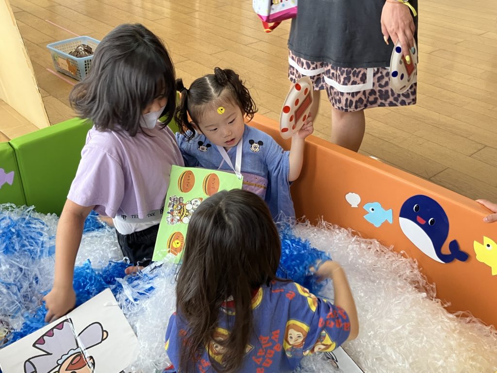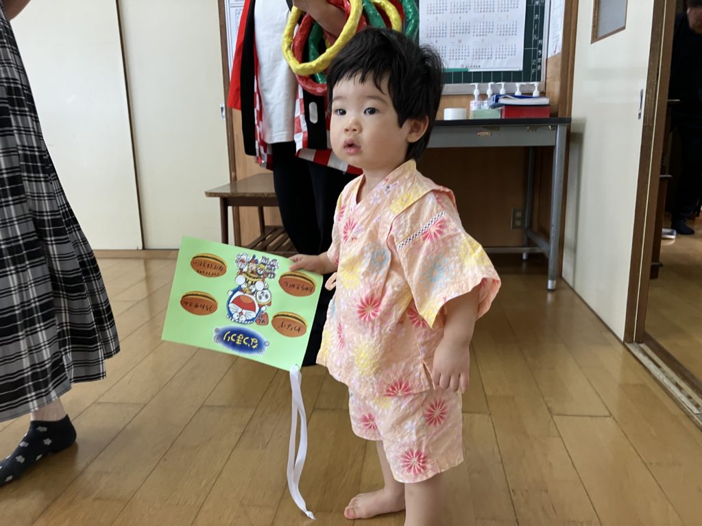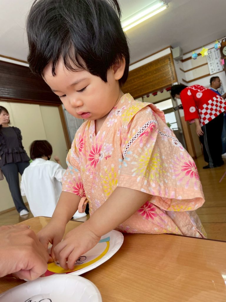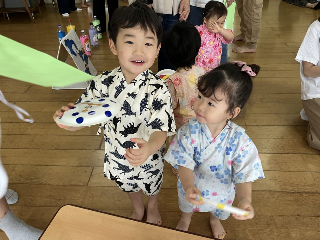 うちわ屋さんでは、ドラミちゃんとドラえもんのどちらかを選んでもらい、うちわの裏には好きな道具を貼ってもらいました!子どもたちそれぞれの色が出て、とても可愛くできましたね🤗