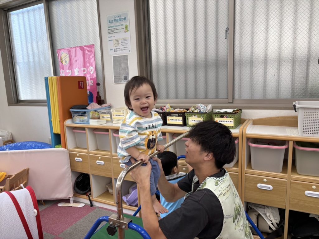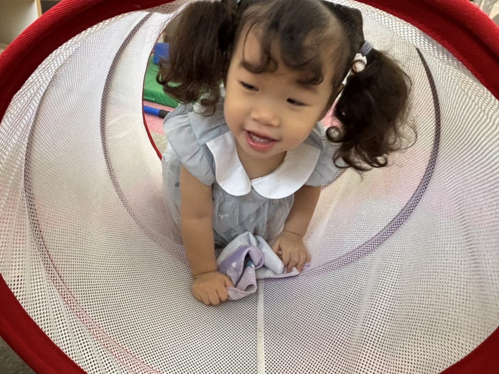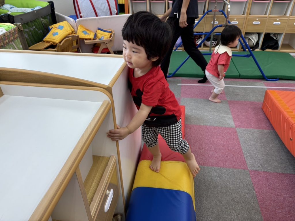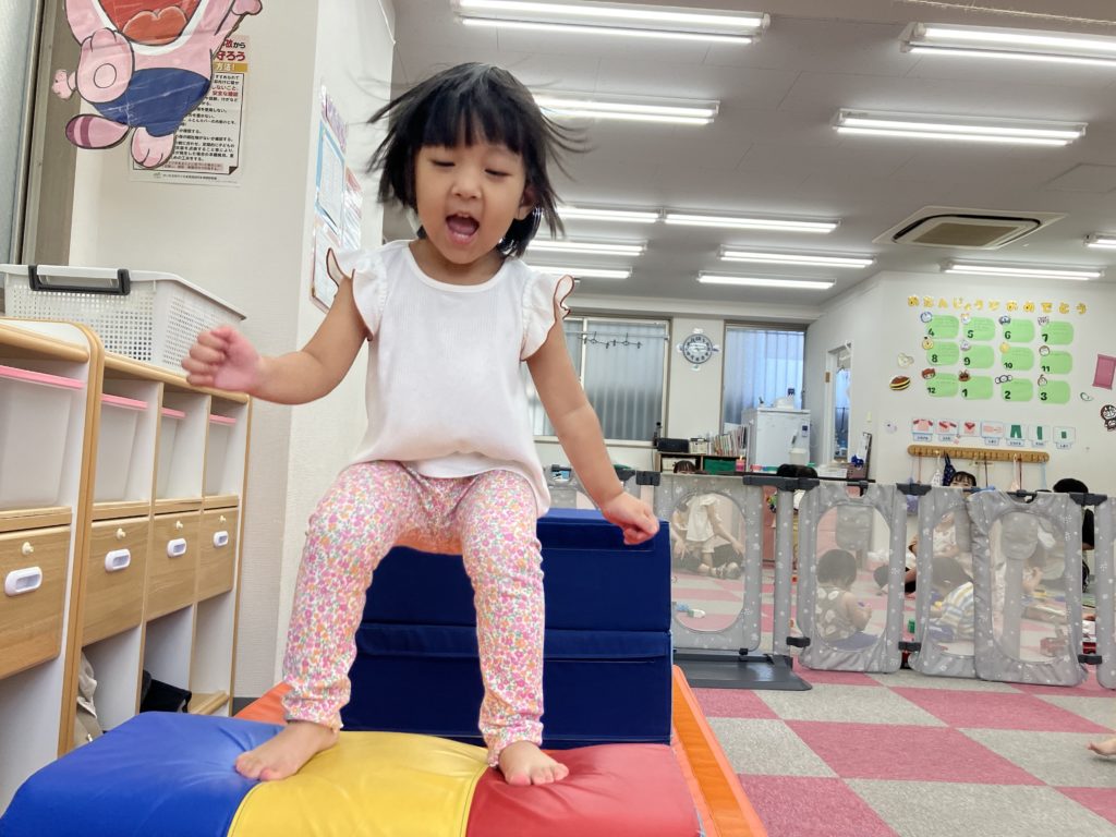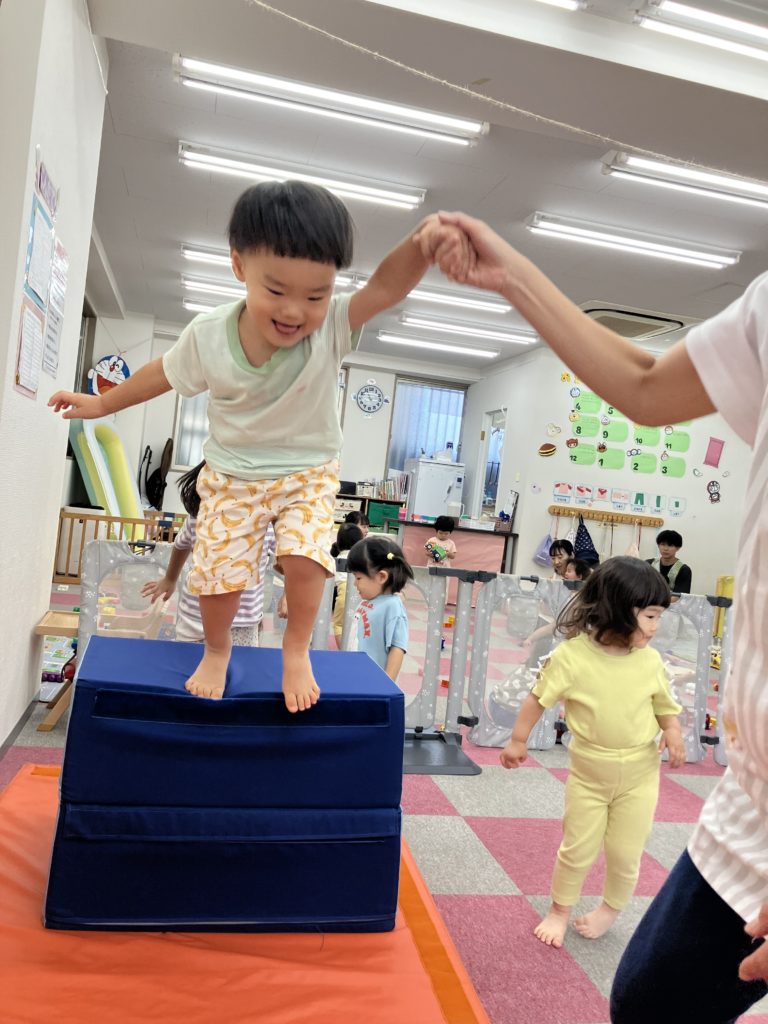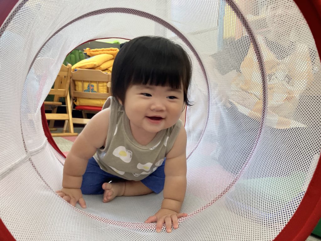 今日は沢山身体を動かす正課体育の日です! みんな楽しみにしており、順番が来るのを今か今かと待っていましたよ✨ 〜0歳児〜 👅行っちゃうよ〜😏どう??🩷 〜1歳児〜 座っ