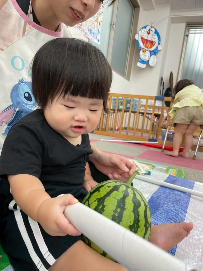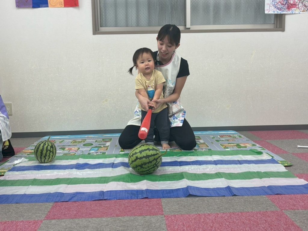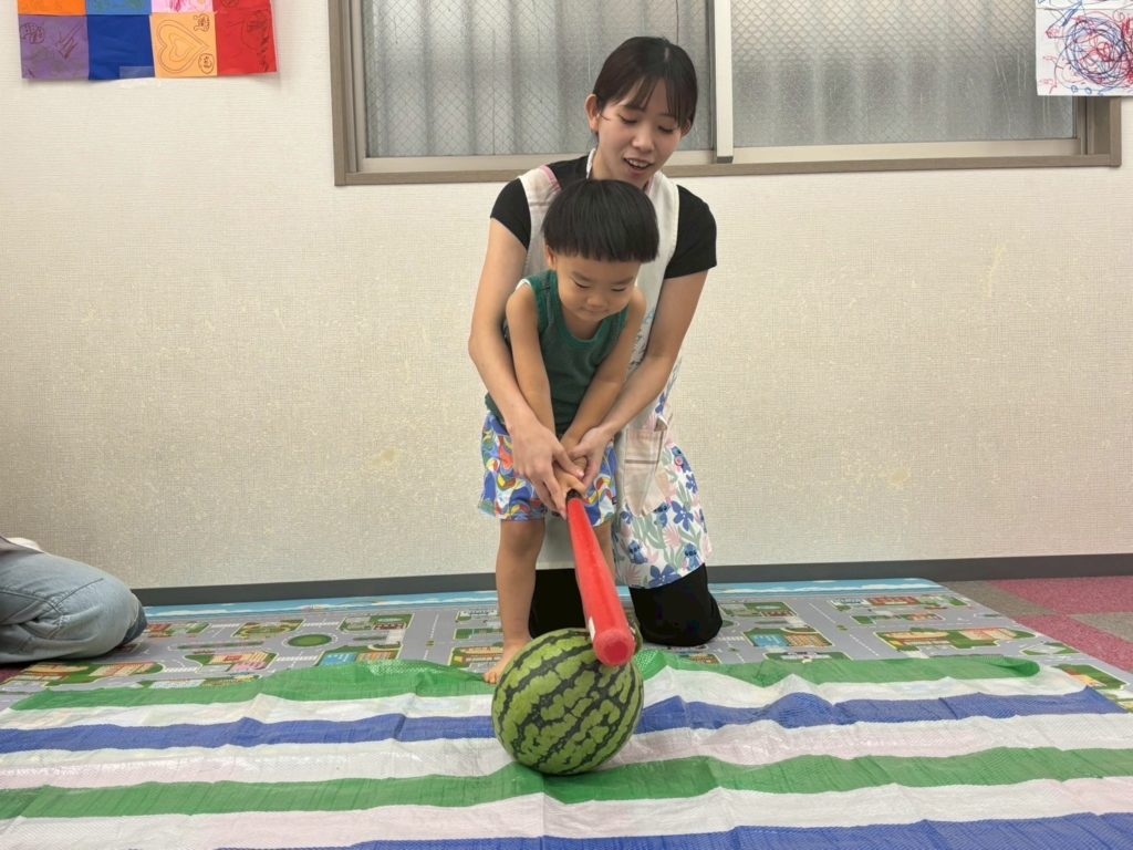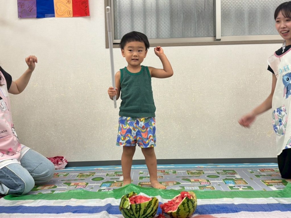 スイカが割れて子どもたちから大歓声と拍手👏が湧き起こりましたよ!
