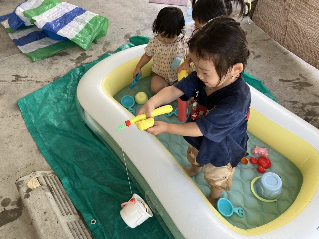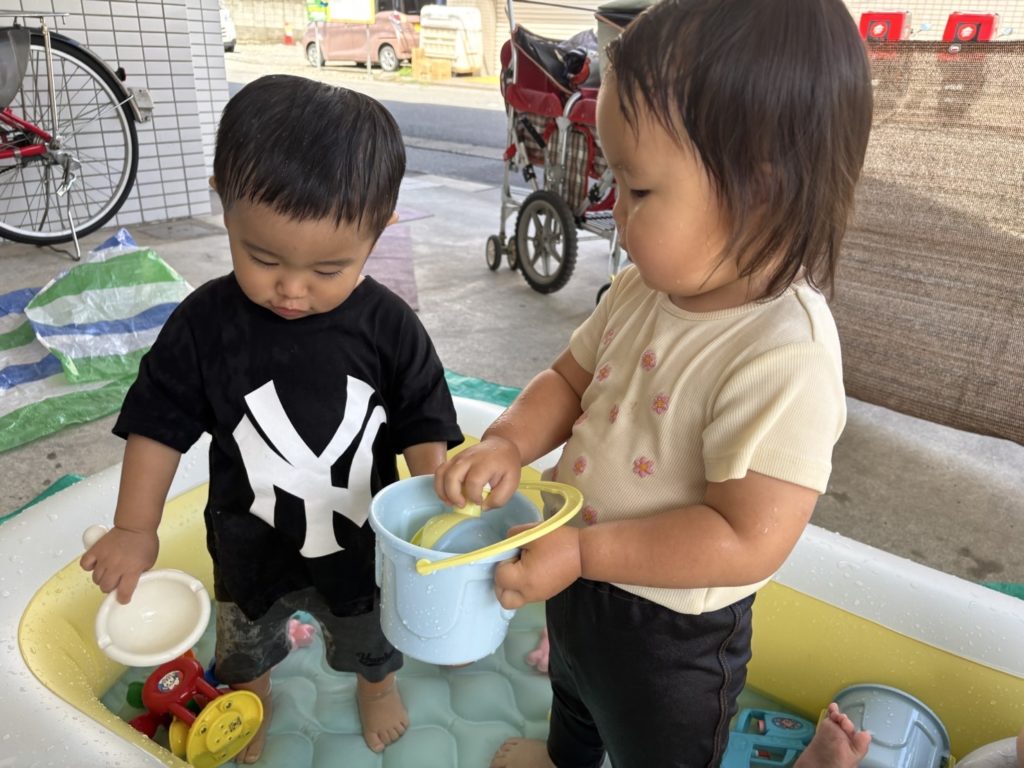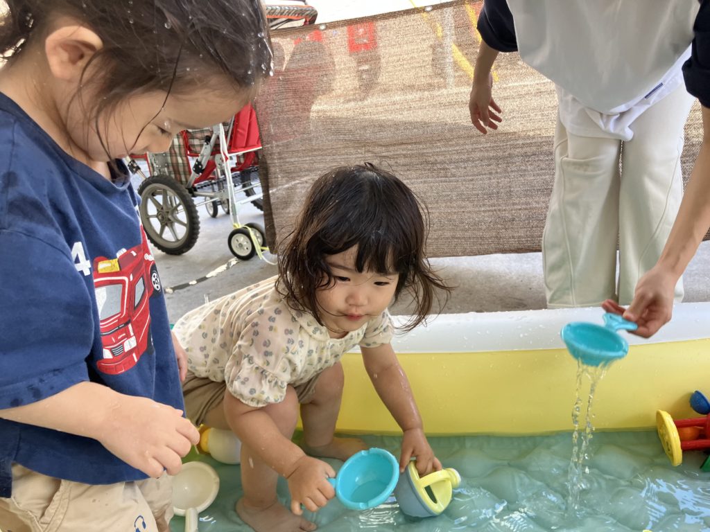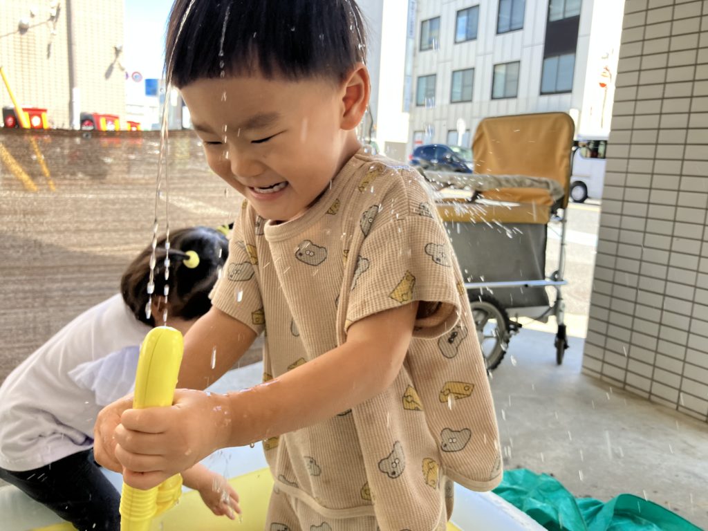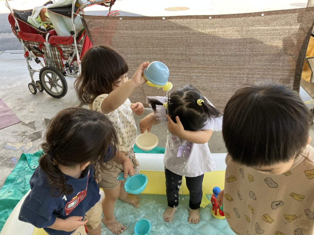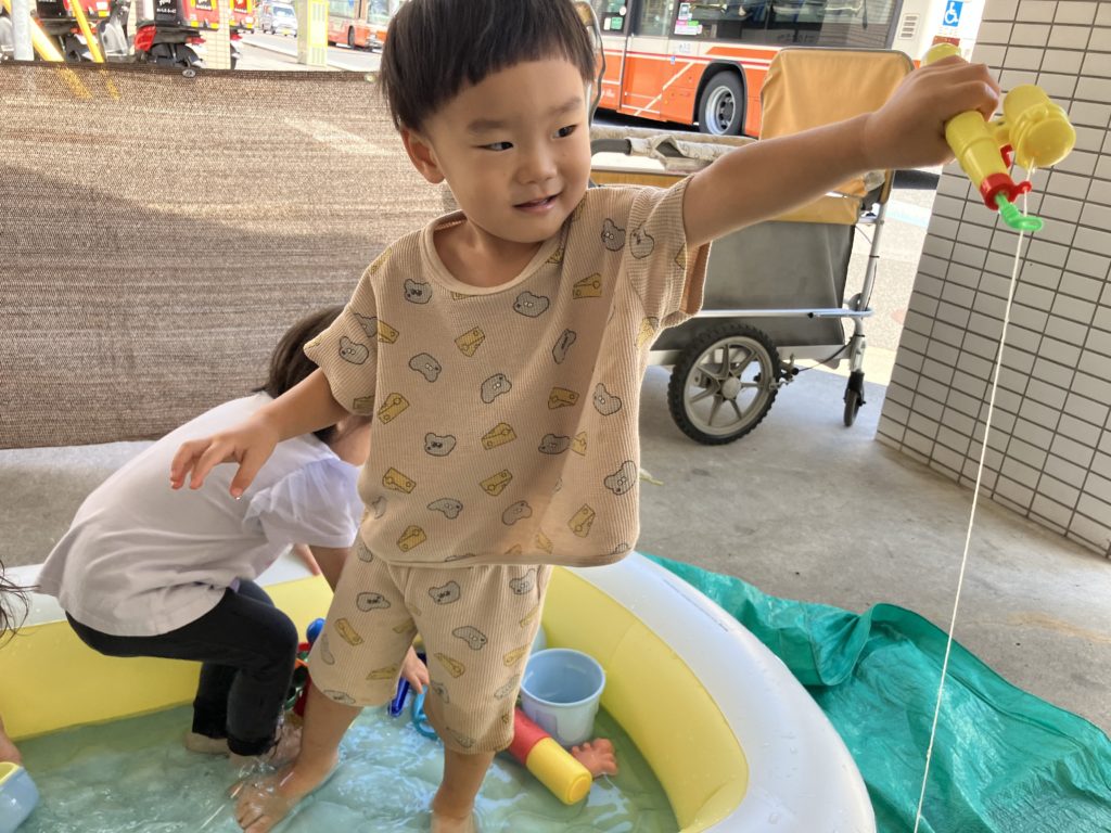今日は水遊びをして遊びました🐬💦遊んでいると風も吹いてきて、気持ちよく水遊びを楽しむことが出来ました😚✨