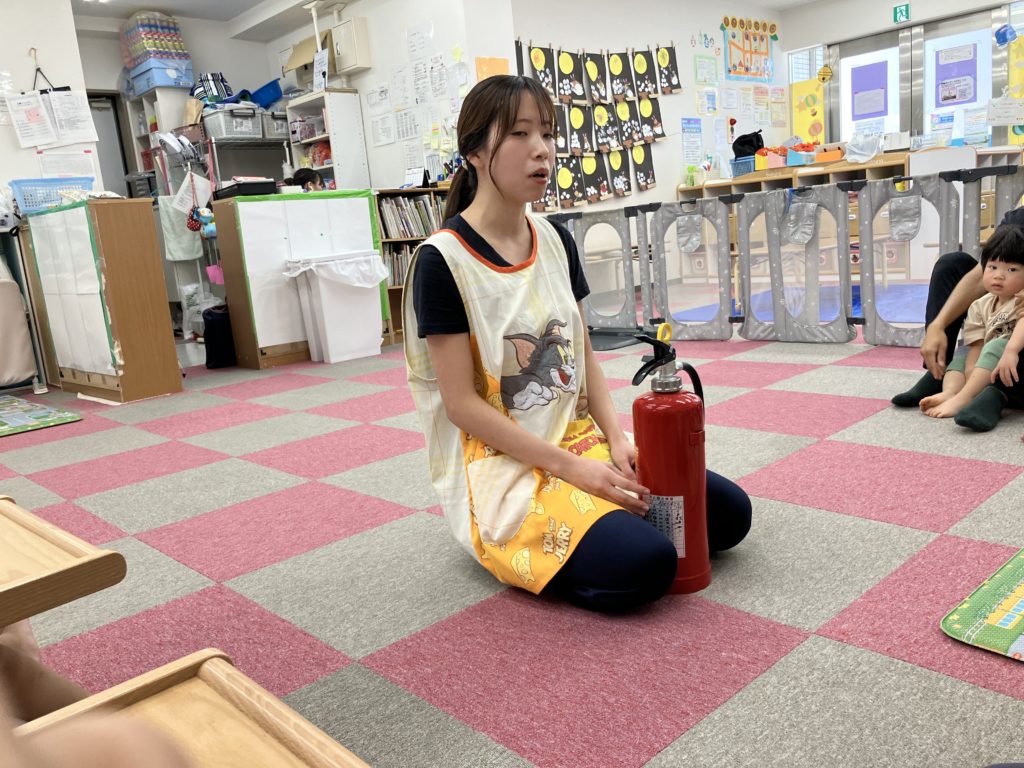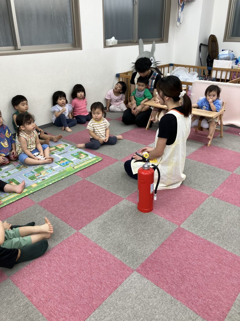 保育園に戻り不審者訓練について改めて子どもたちに訓練の大切さと消化器🧯について伝えました。