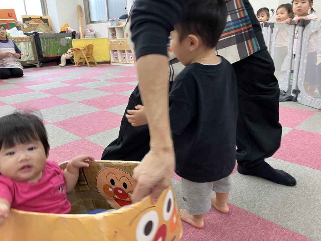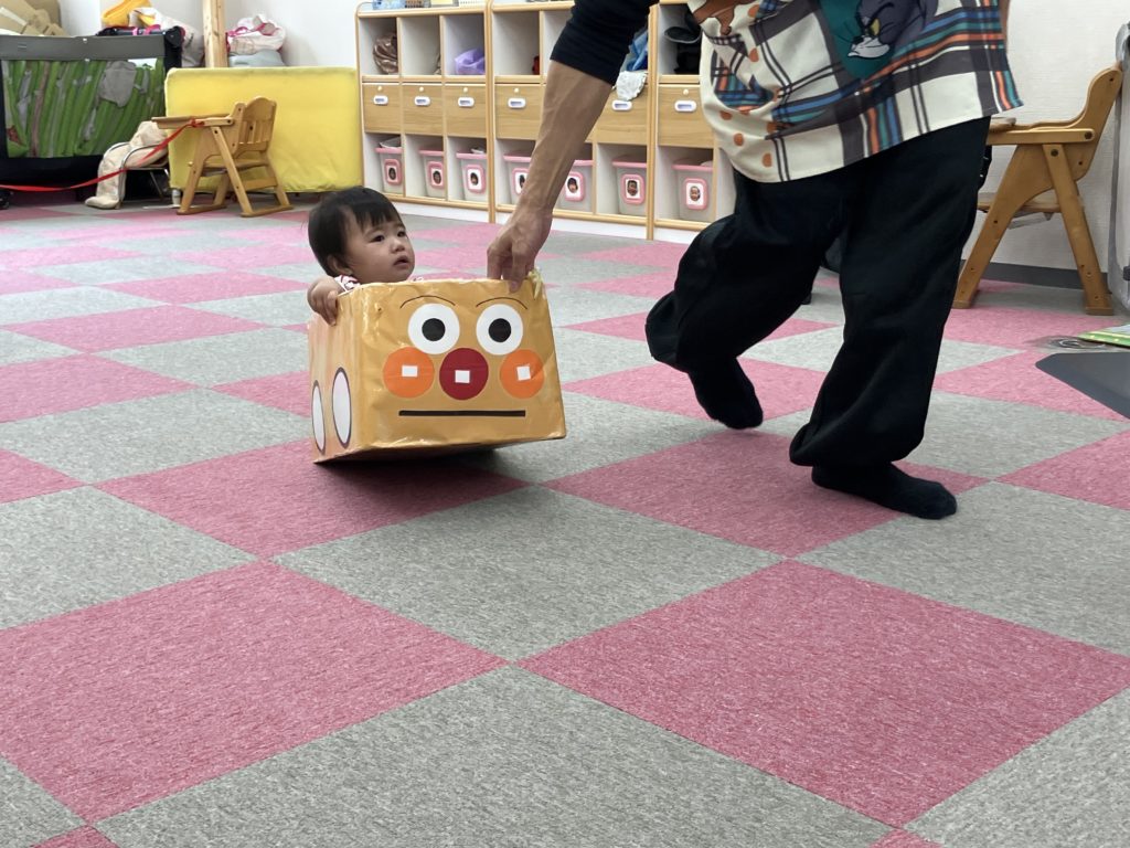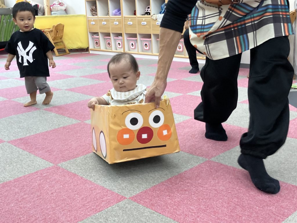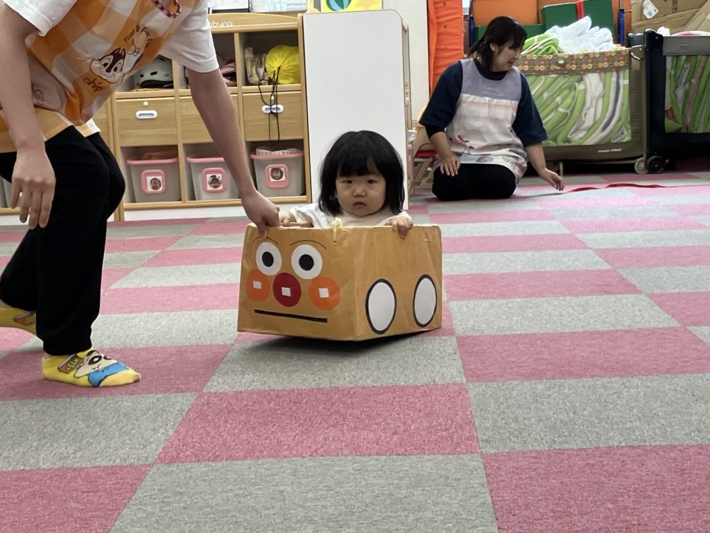今日初めて挑んだ0歳児!緊張しつつも、アンパンマン号にはノリノリで乗っていました🚗